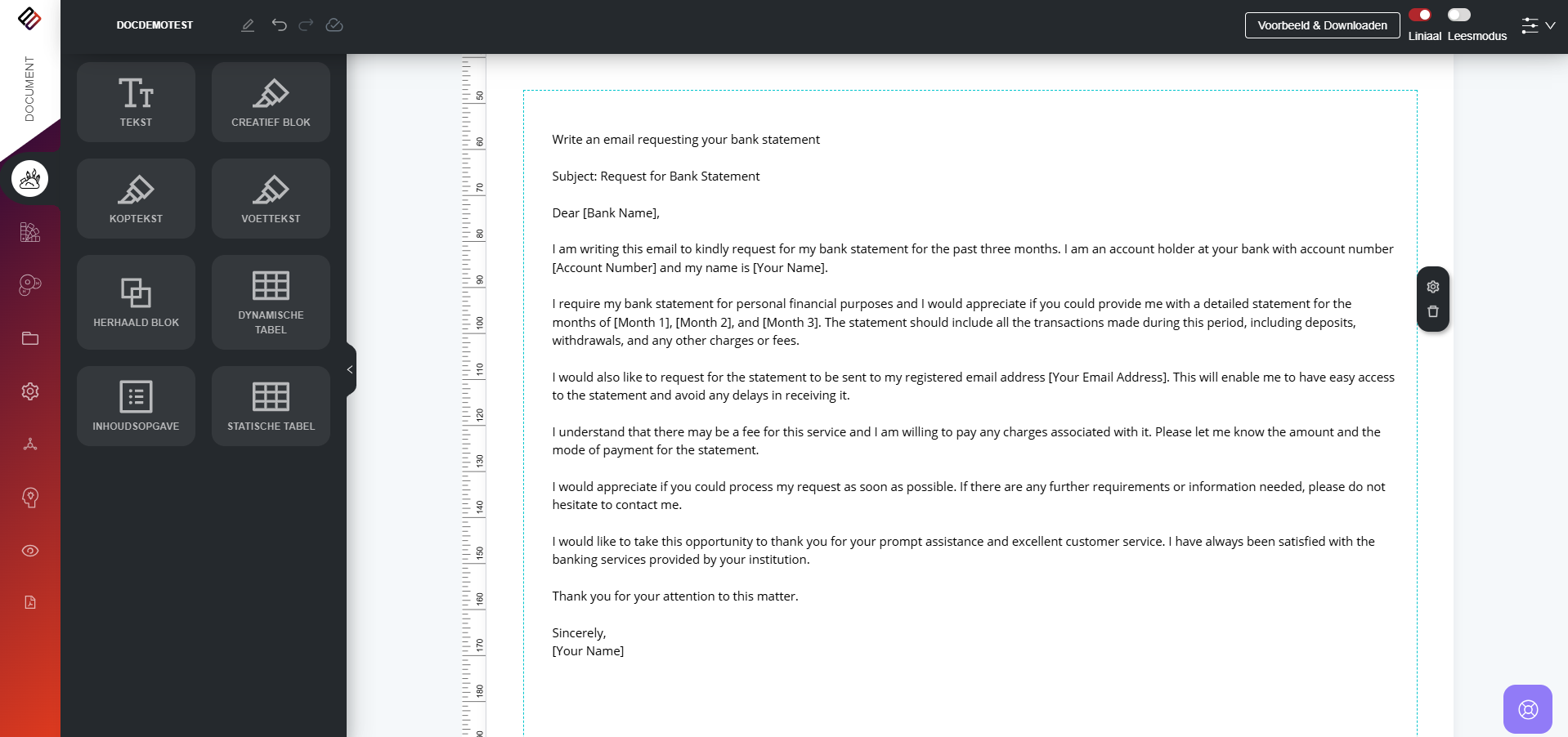 Gebruikers kunnen een gepersonaliseerd document downloaden van het ontwerpgebied door te klikken op de knop "Voorbeeld & Downloaden" bovenaan. Deze actie brengt hen naar de sectie Preview and Download, die ook toegankelijk is via het menu aan de ...