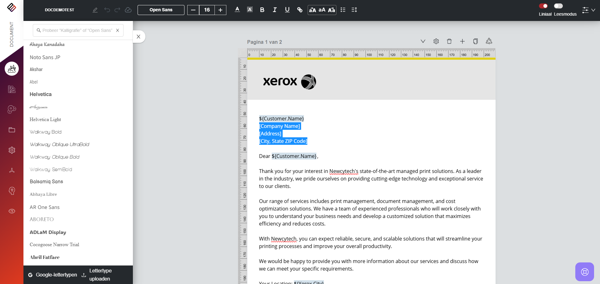 In het bovenste gedeelte van de ontwerpinterface is een breed scala aan tekststijltools beschikbaar. Met deze opties kunt u uw tekst aanpassen en formatteren zodat deze overeenkomt met uw ontwerpvoorkeuren.