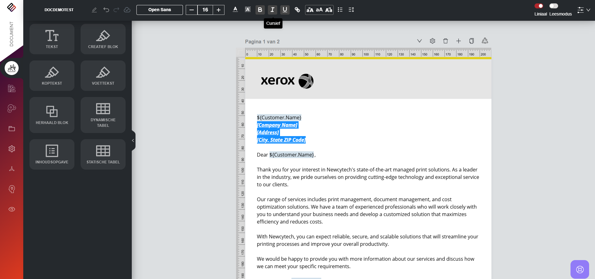 Tekststijlen: opties voor vet, cursief en onderstrepen zijn beschikbaar om uw tekst te stylen. Selecteer uw tekst en klik vervolgens op de betreffende stijl in de werkbalk om deze toe te passen.