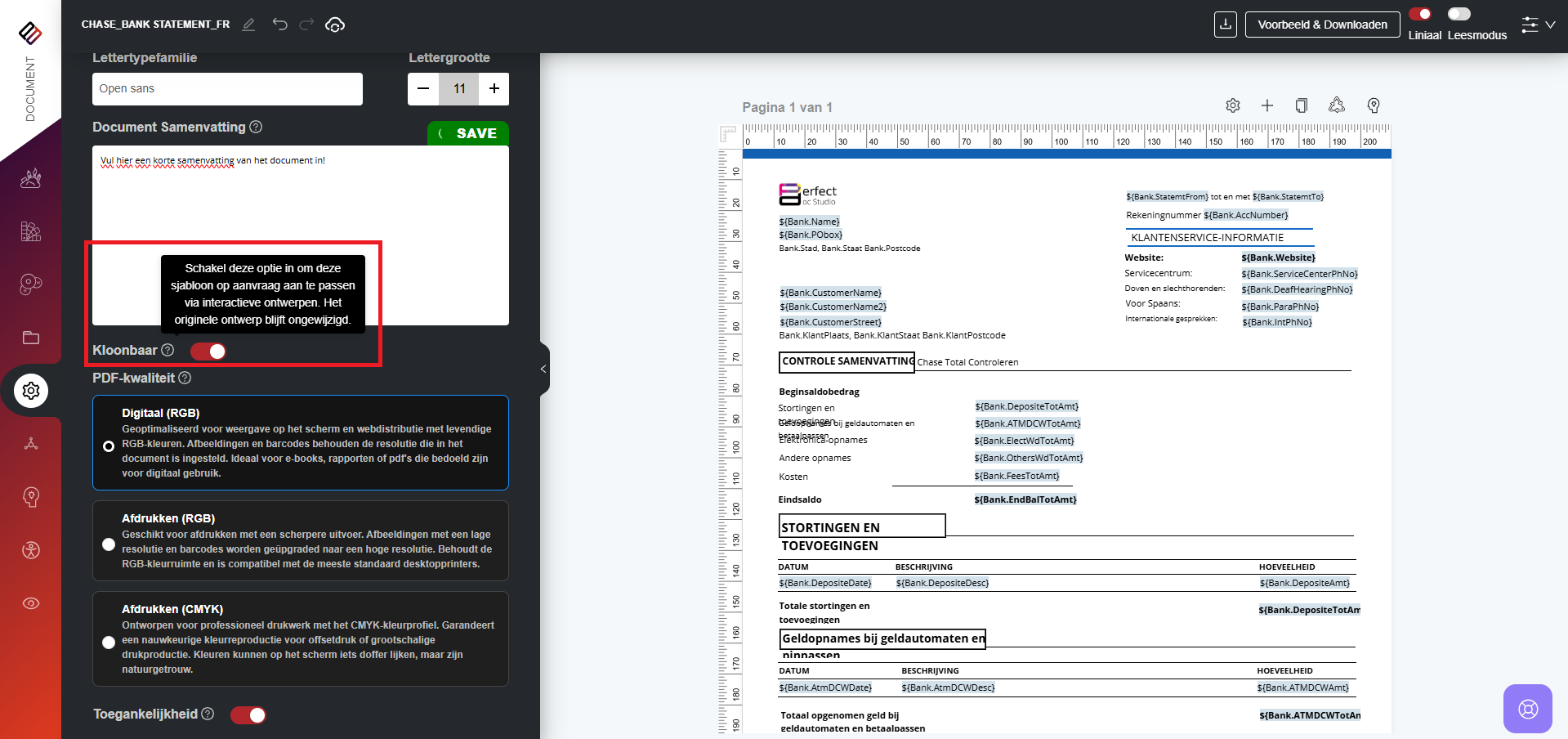 Schakel deze optie in om de sjabloon op aanvraag aan te passen via interactieve ontwerpen, terwijl het originele ontwerp intact blijft.
