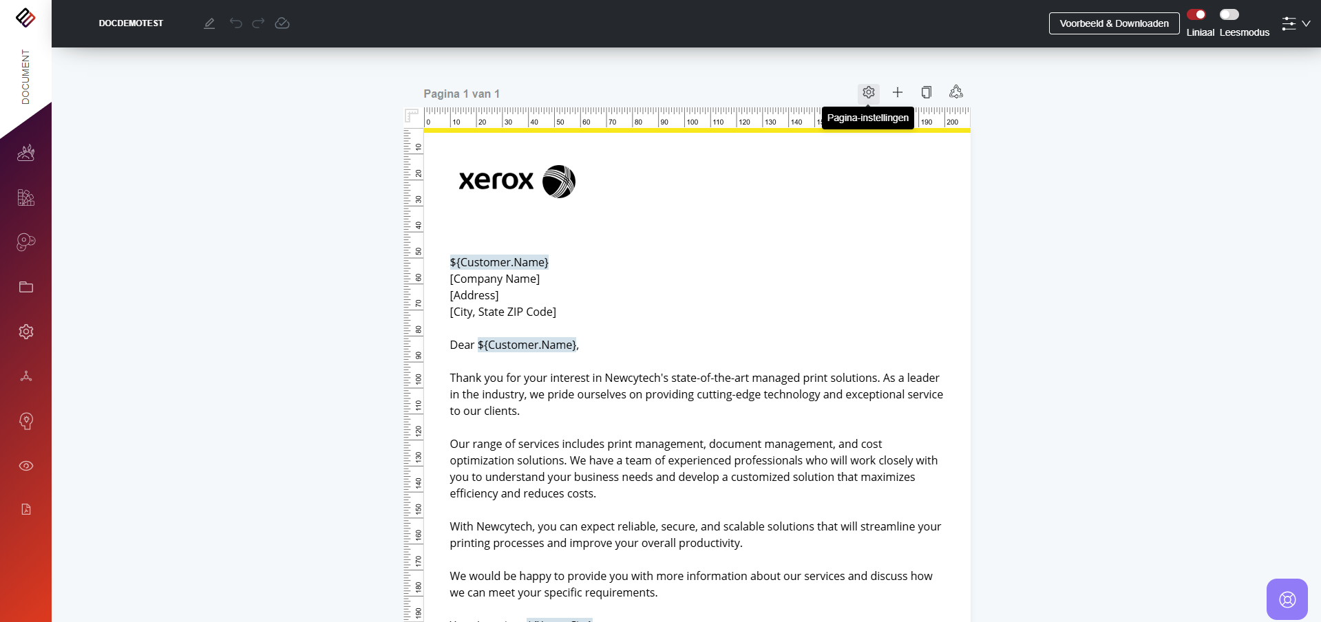 U kunt de marges voor een document eenvoudig configureren met de optie Pagina-instellingen. Volg deze stappen: 1. Klik op de instellingenknop bovenaan elke pagina in het document. 2. Met deze actie wordt aan de linkerkant van het ontwerpgebied een ...
