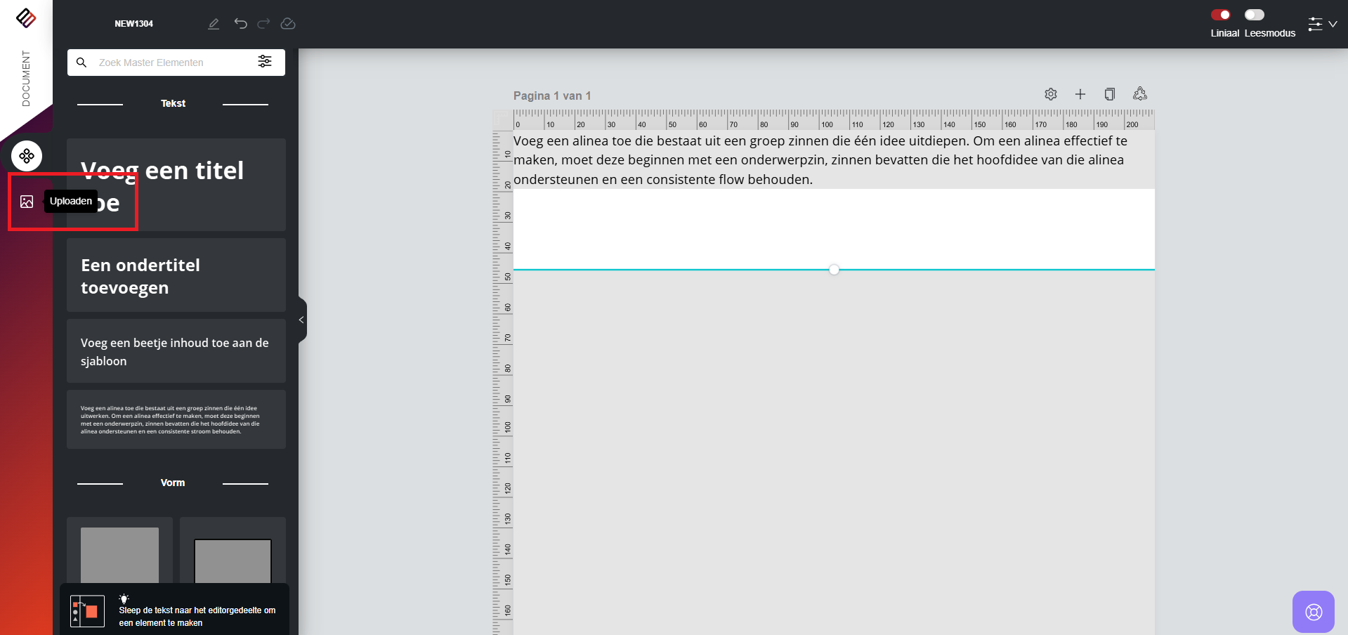 Om een afbeelding in het ontwerp van uw document in te voegen of te uploaden, volgt u de onderstaande instructies: