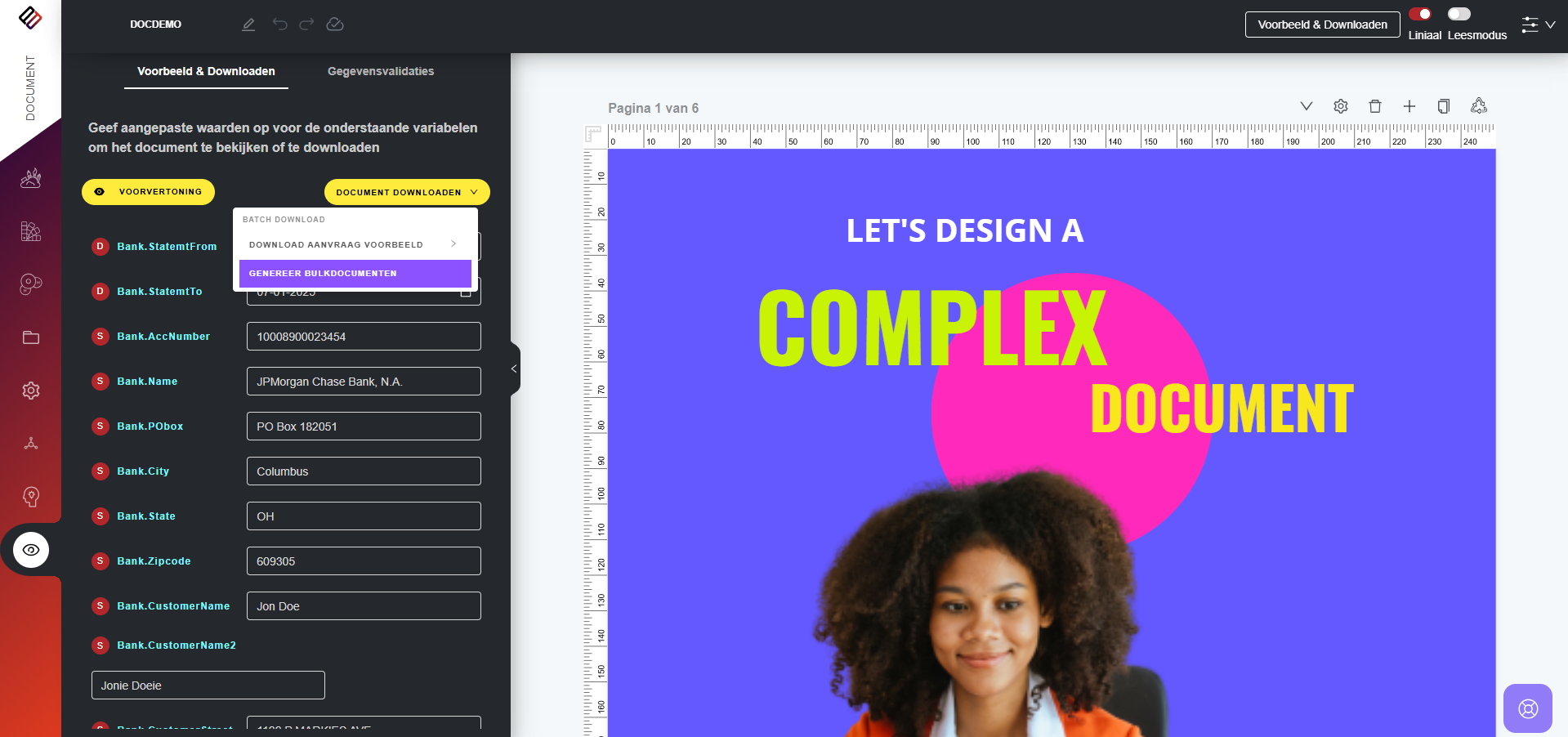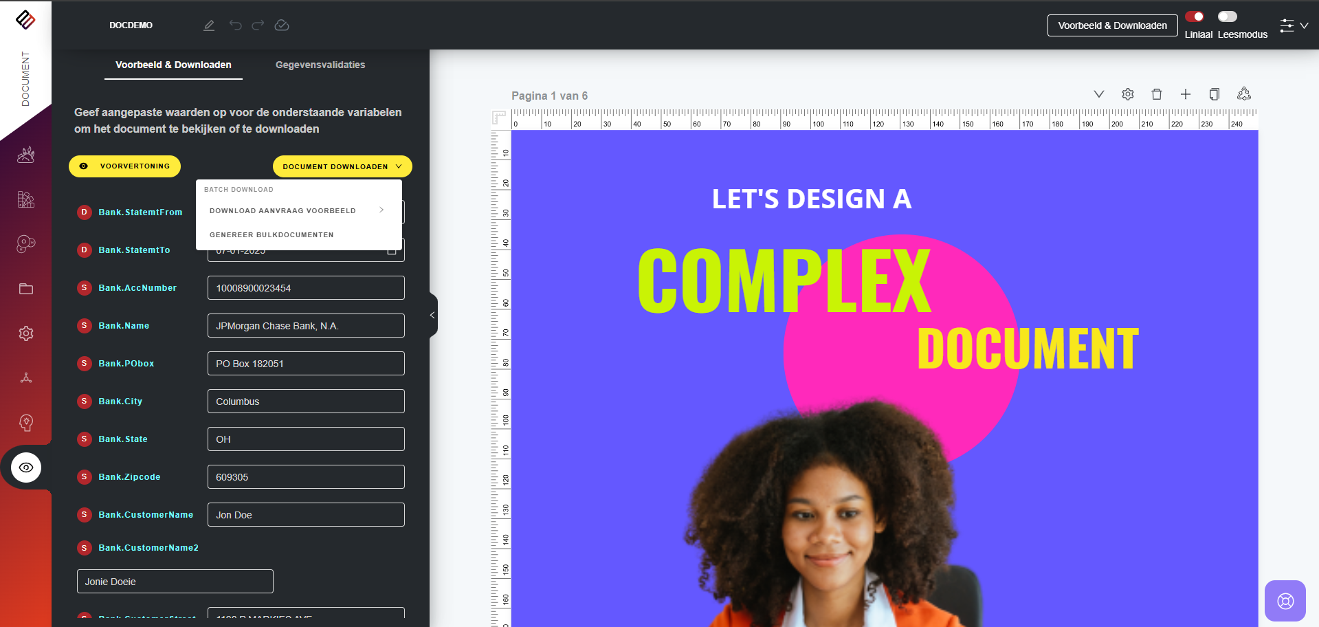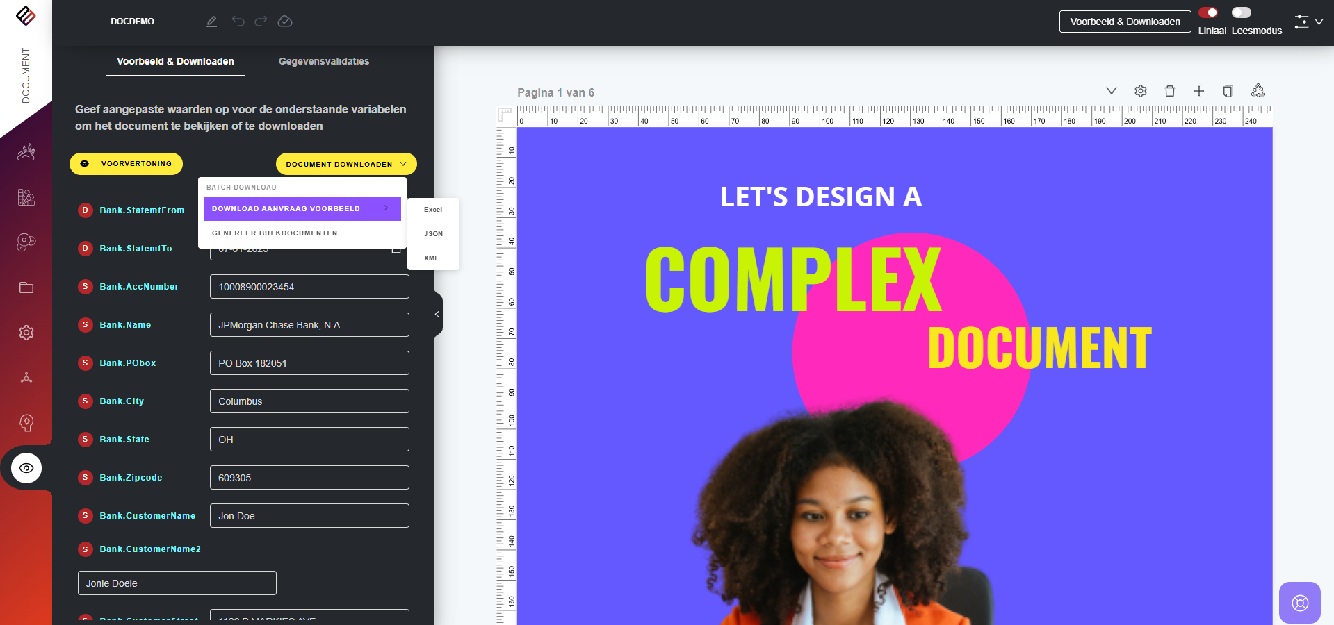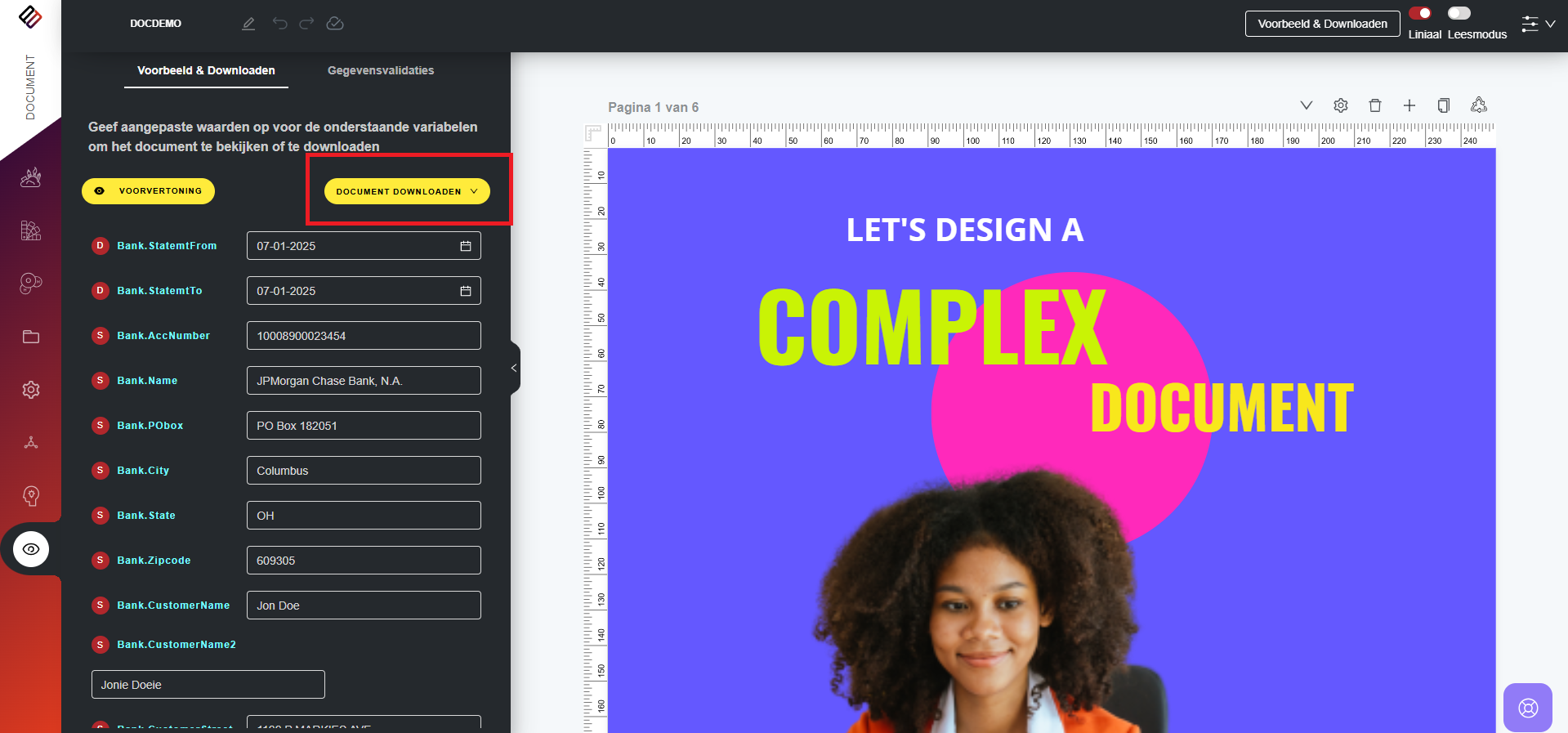 Klik op de knop Document downloaden om een voorbeelddocument te downloaden.