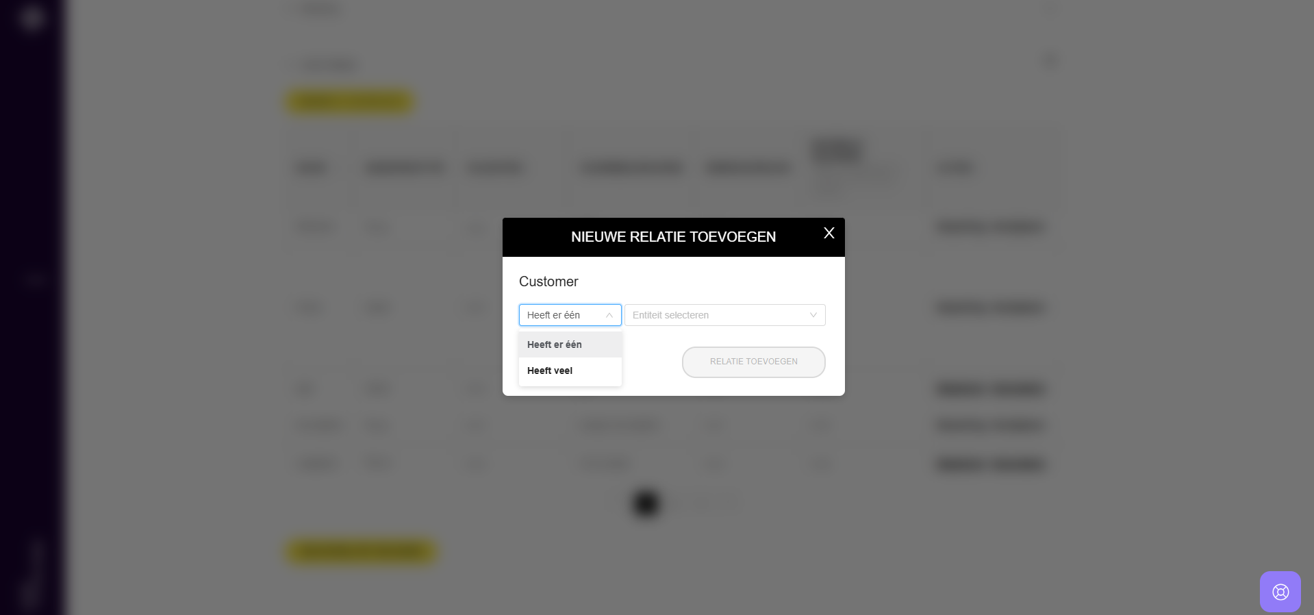 6. Kies vervolgens het relatietype 'Heeft één' of 'Heeft veel':