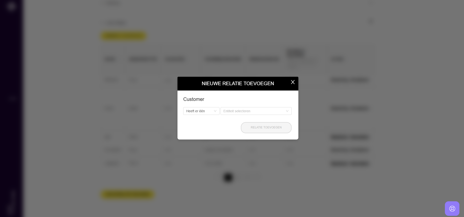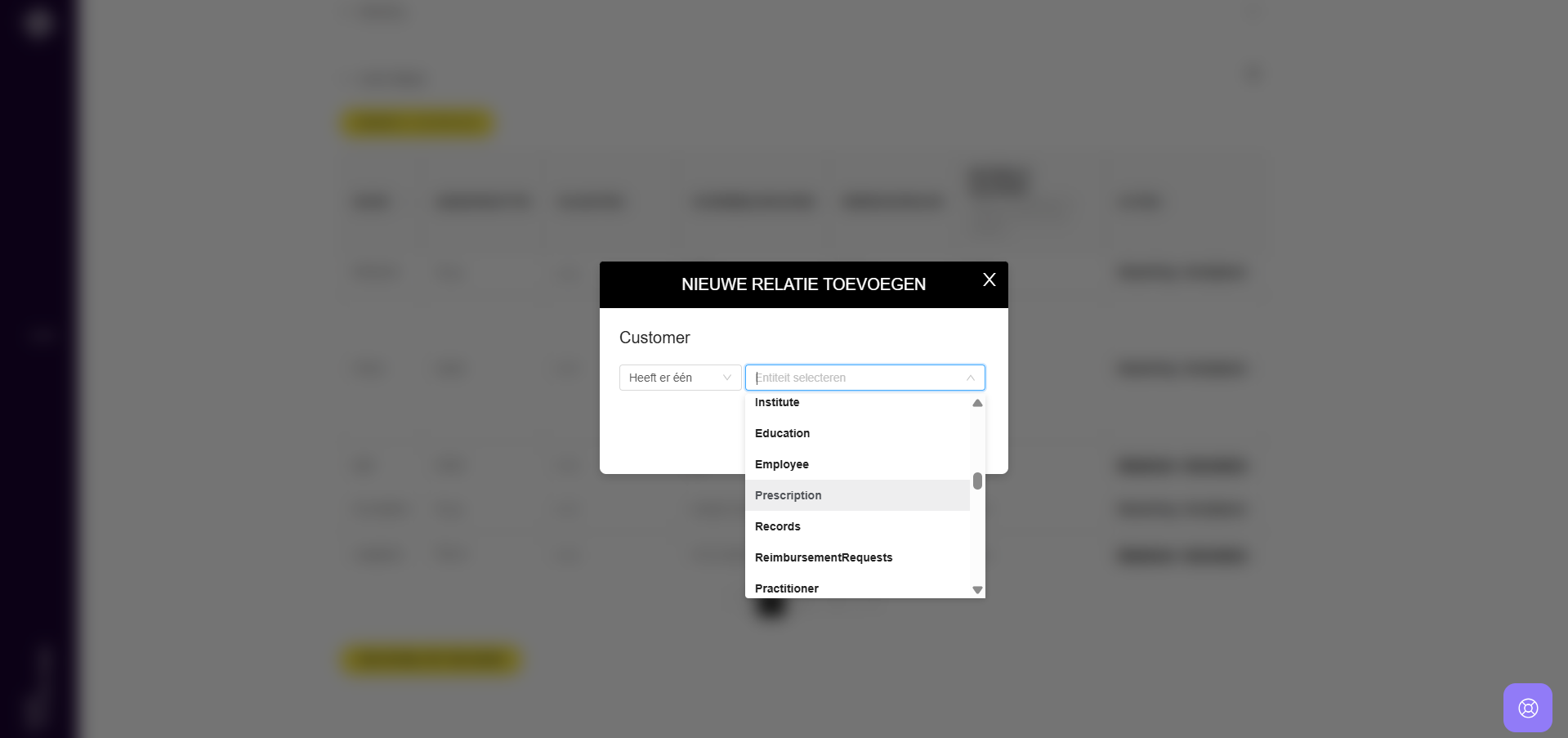 4. Er verschijnt een modaal venster waarin u de gerelateerde entiteit en het relatie type kunt selecteren.