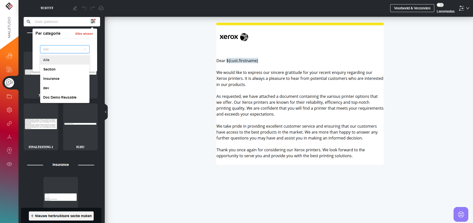 Gebruikers kunnen herbruikbare pagina's en secties binnen een documentsjabloon maken. Dit betekent dat ze een heel document kunnen ontwerpen voor hergebruik in een andere sjabloon of specifieke componenten, zoals headers, kunnen bouwen en deze kunnen ...
