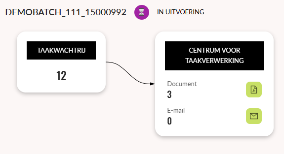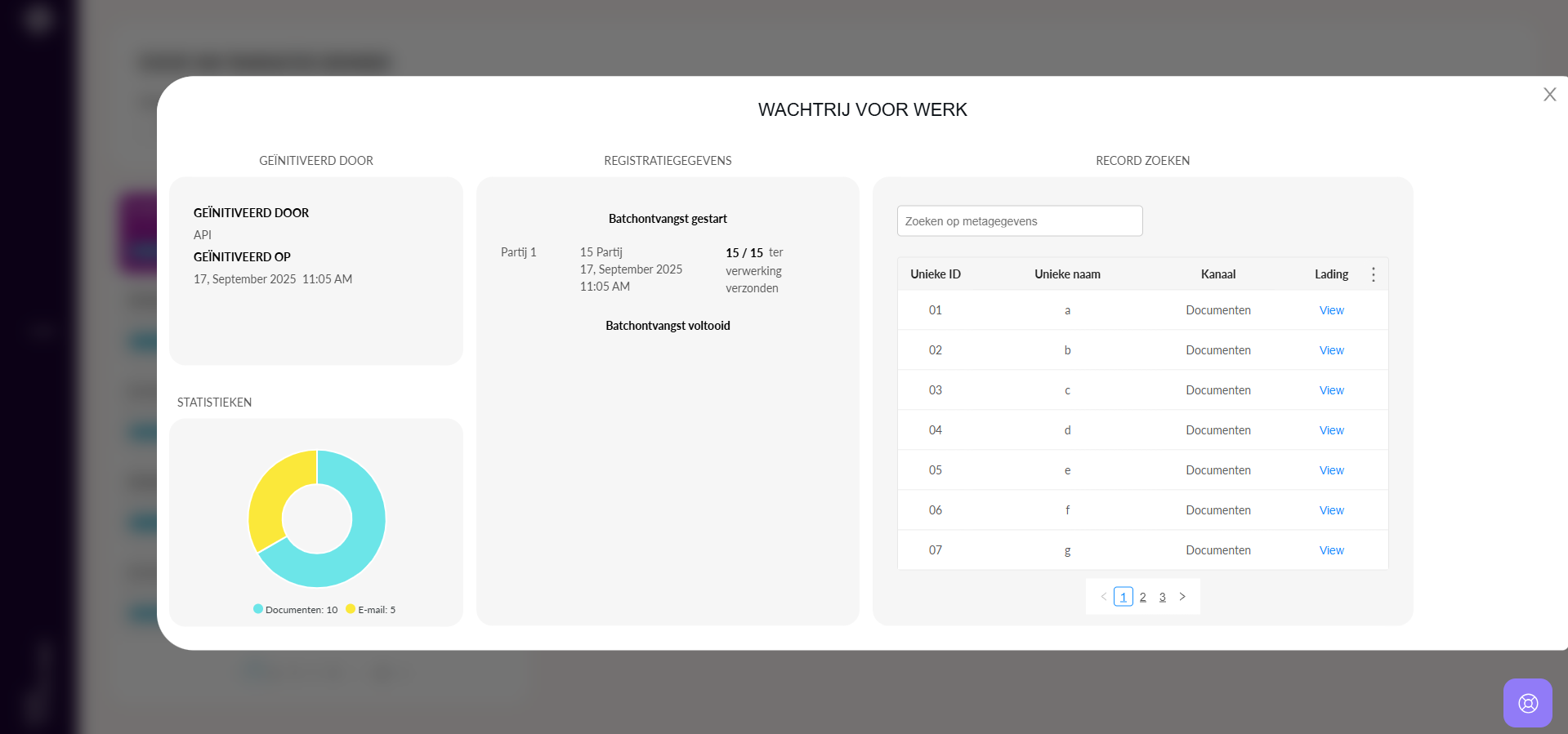 - Het aantal documenten/e-mails per batch en hoeveel documenten/e-mails er ter verwerking zijn verzonden.
