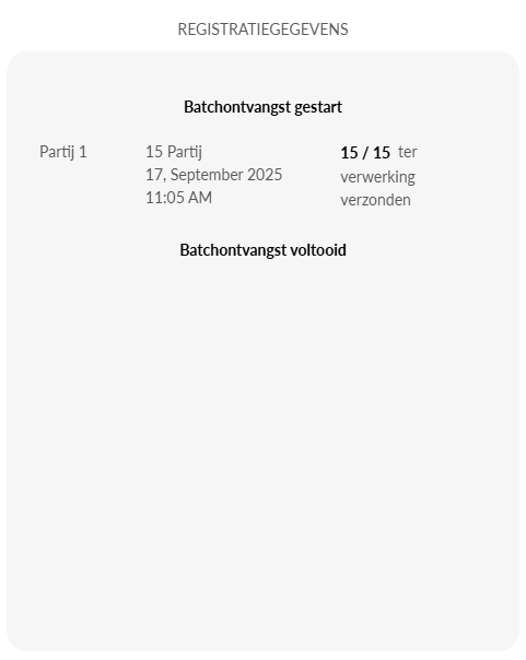 - Batchstatus (bijv. of de batchontvangst is gestart)