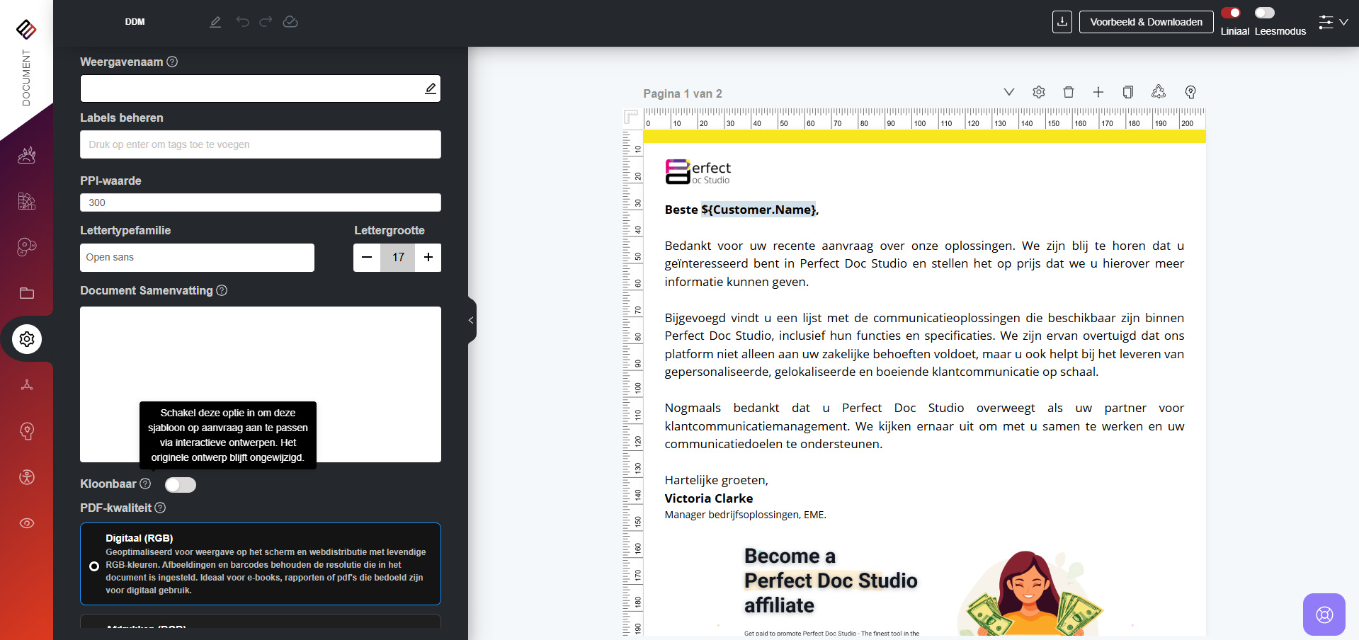 3. Schakel in het paneel Documentinstellingen de optie Klonbaar in.
