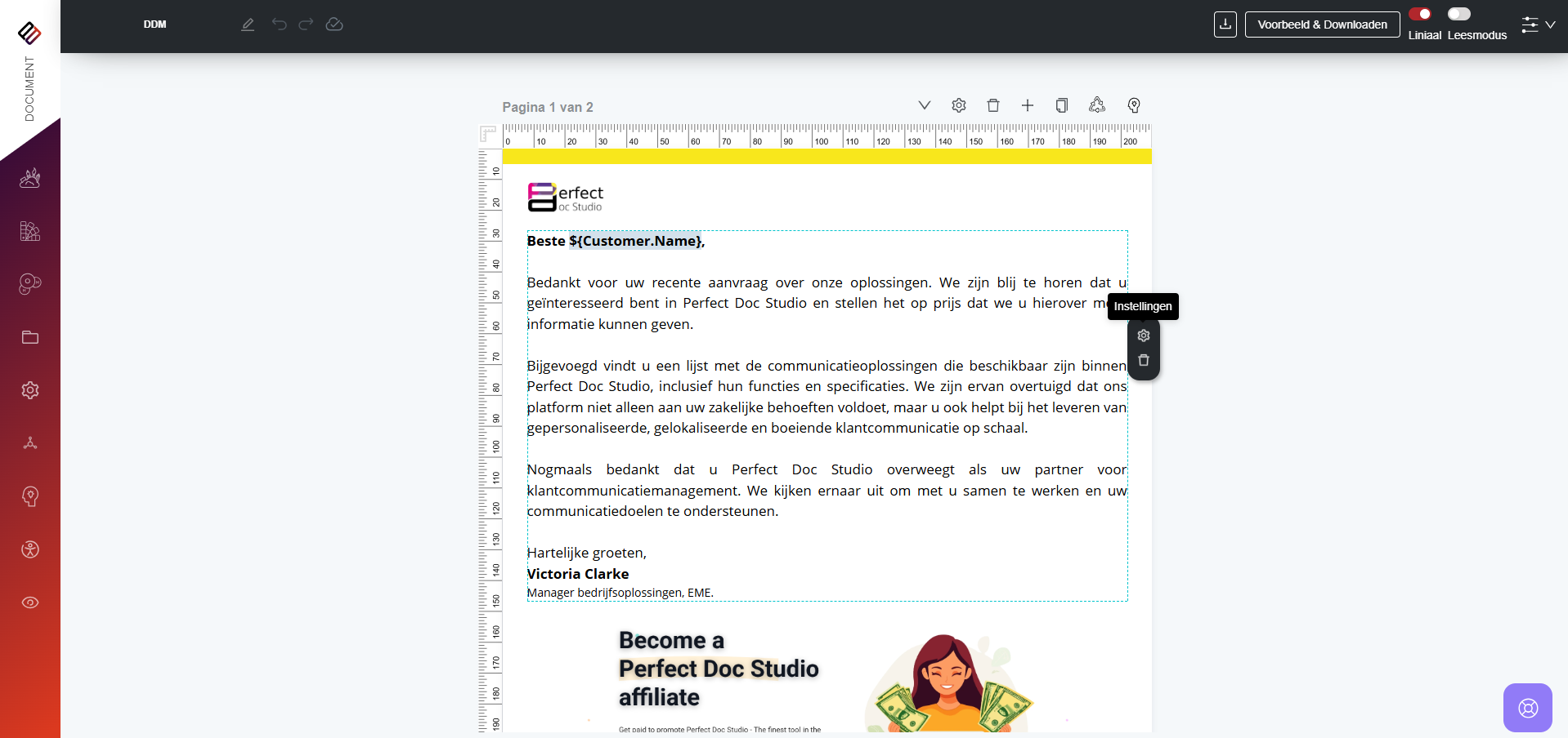 14. Zodra de wijzigingen zijn voltooid, kunt u naar de sectie Voorbeeld en downloaden gaan om het document te downloaden en handmatig naar de betreffende klant of ontvanger te sturen.