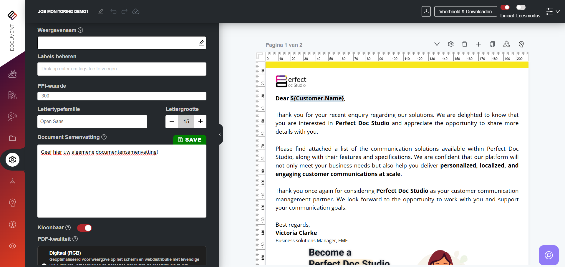 3. Gebruikers kunnen een korte documentsamenvatting toevoegen die het doel en de inhoud van het document duidelijk uitlegt. Indien nodig kunnen ze ook variabelen in de samenvatting opnemen.