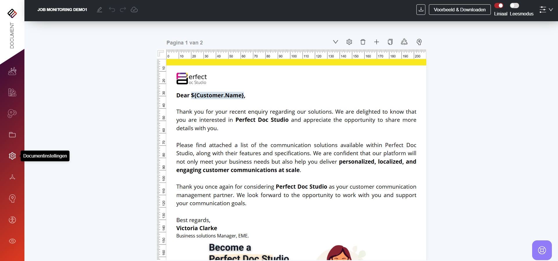 1. Klik in het linkermenu op Documentinstellingen.