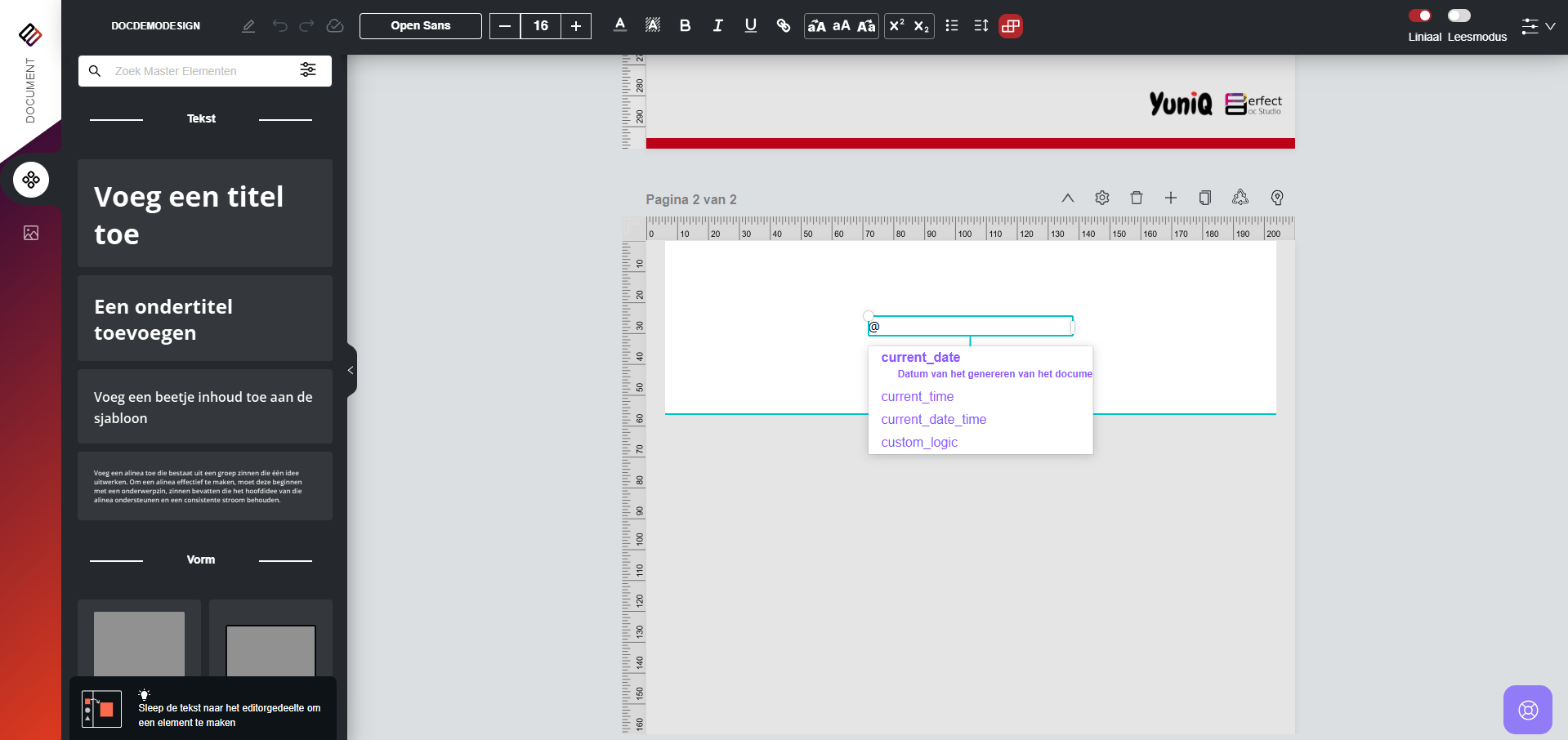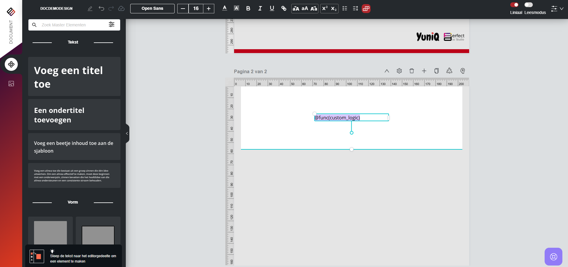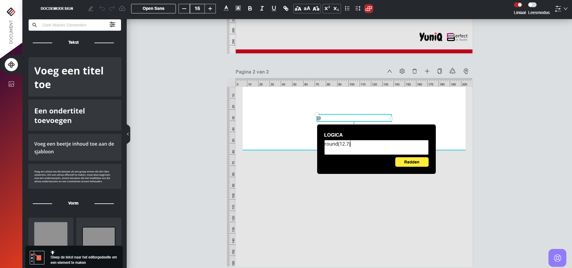 5. De opgeslagen logica wordt automatisch toegepast wanneer het document wordt gegenereerd.