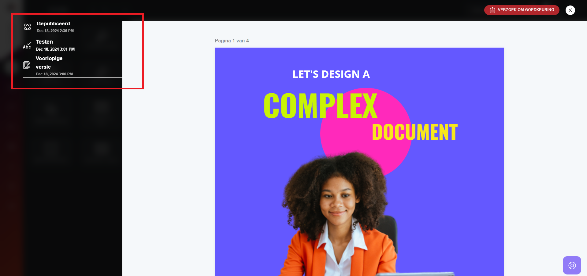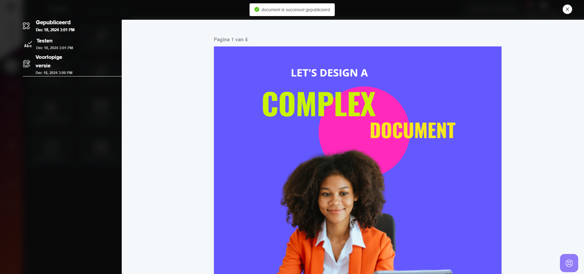 De laatste fase in het versiebeheerproces is de publicatieomgeving. In deze fase wordt de grondig geteste documentsjabloon voorbereid voor implementatie in de productieomgeving. Sjablonen blijven in deze fase in de alleen-lezenmodus om consistentie te garanderen en last-minute wijzigingen te voorkomen.