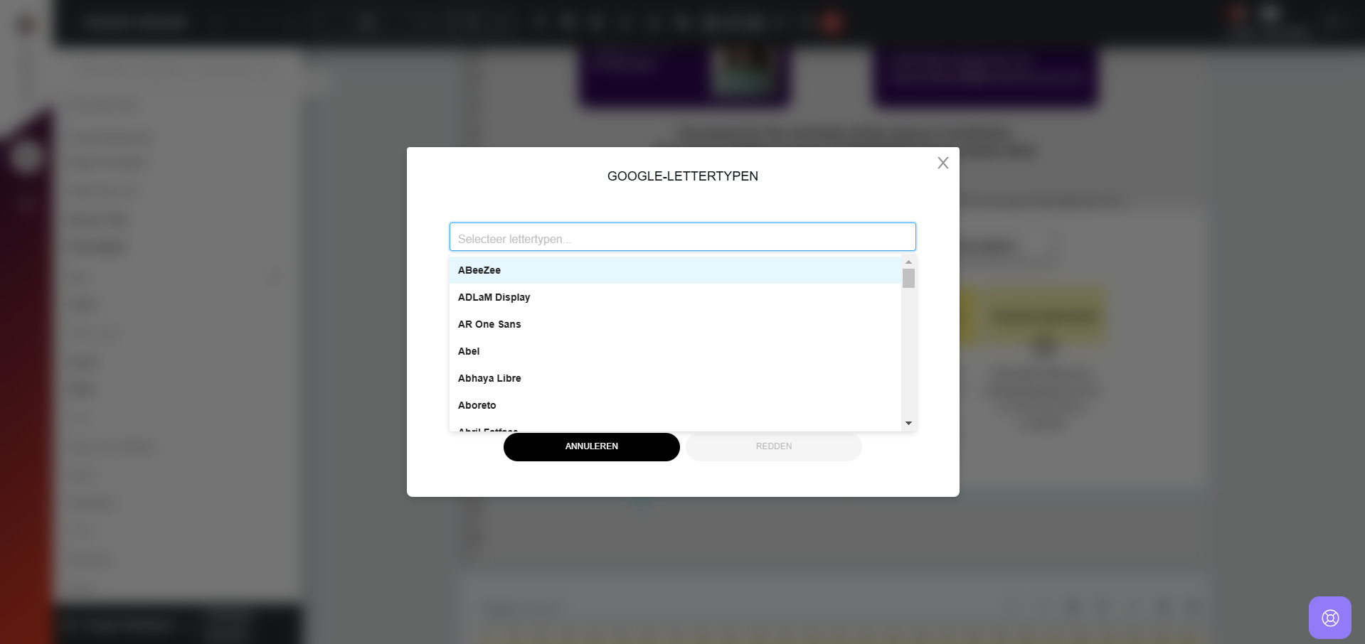 Bladeren en lettertypen selecteren: Er verschijnt een venster met de Google Font-bibliotheek. Kies de lettertypen die u wilt gebruiken en klik op 'Opslaan'.