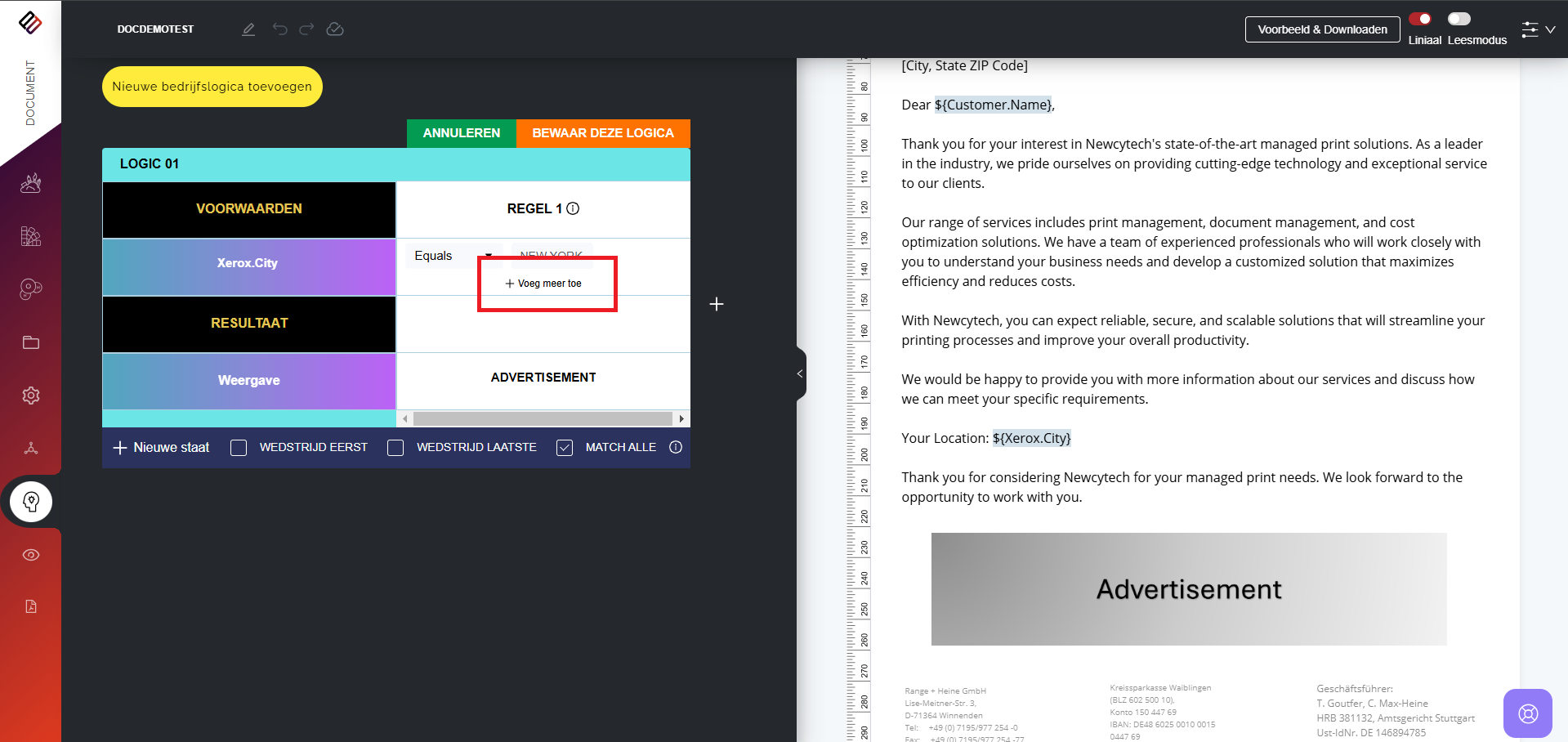 Regelgestuurde documenten maken op basis van bedrijfslogica