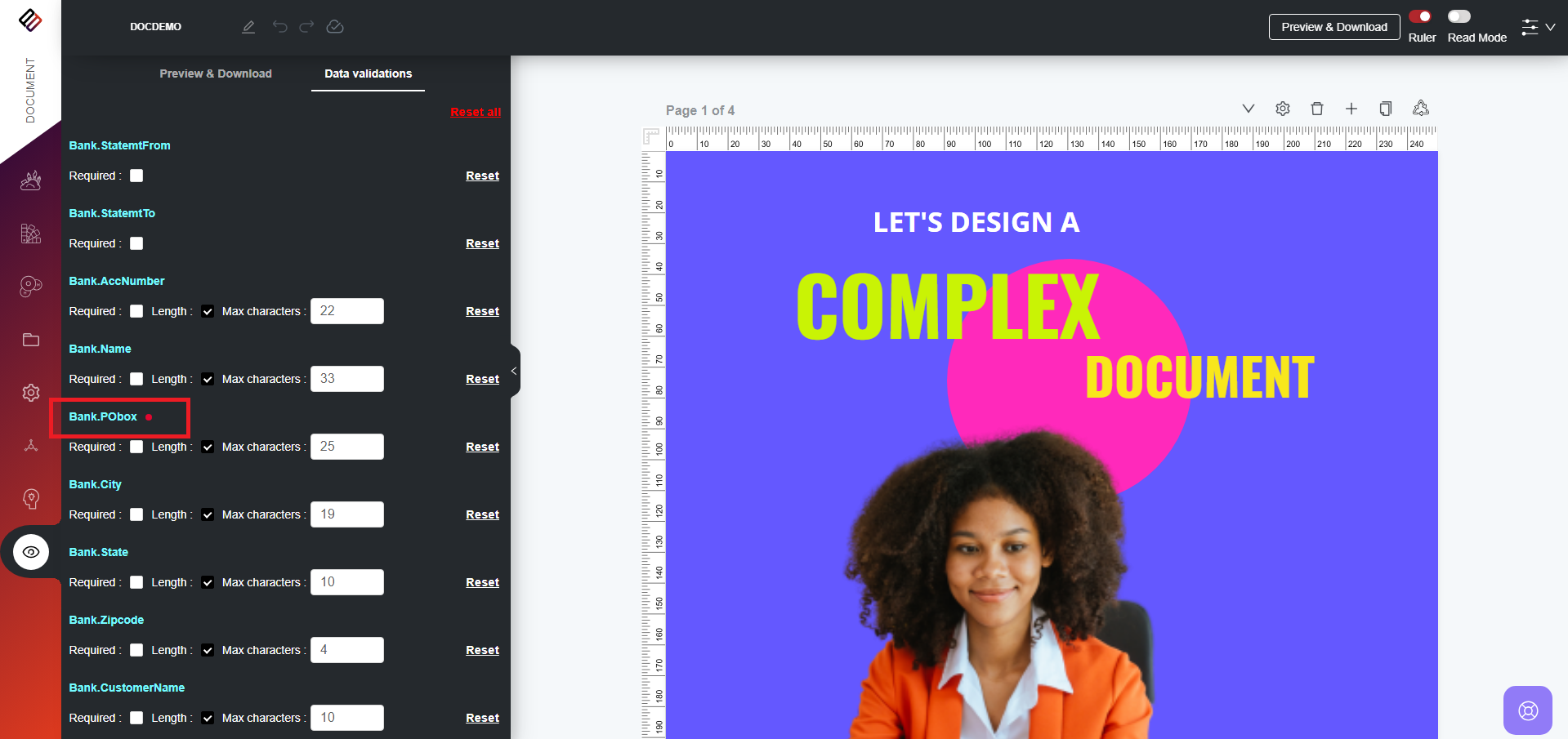 In Perfect Doc Studio, variables are managed at a global level, as demonstrated in the accompanying video. The system features entities that house variables, defining all relevant data variables for your business. This ensures the consistency of ...