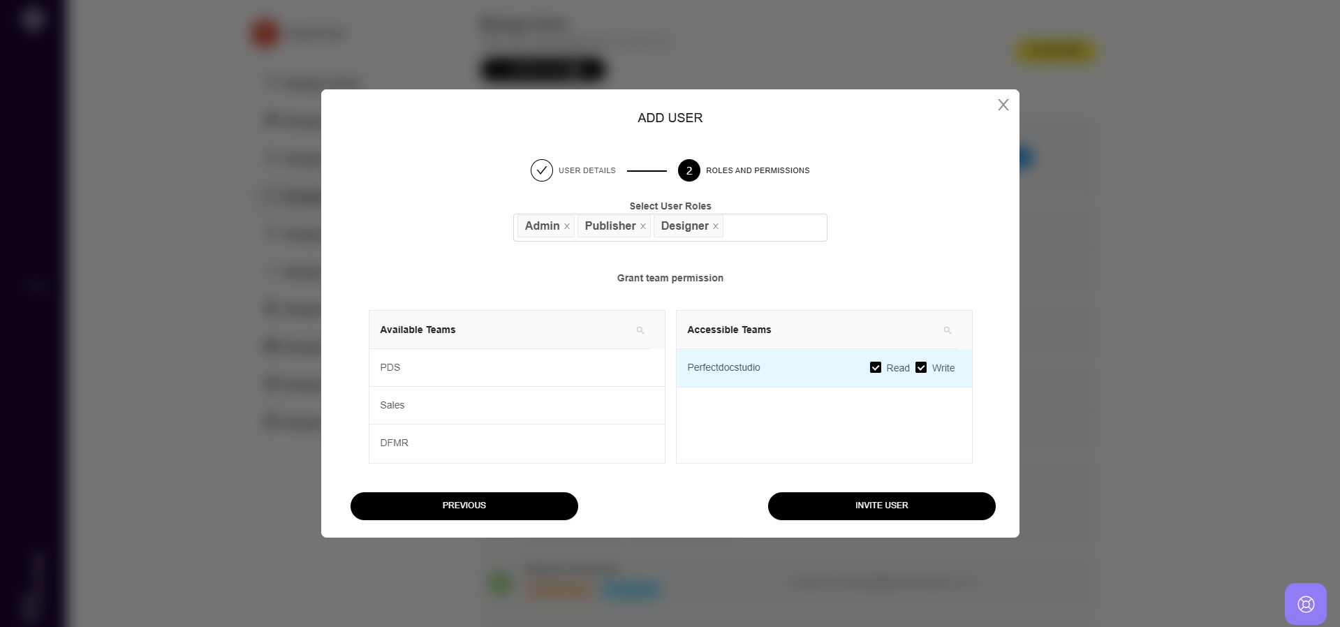 7. You can also assign the user to a team with specific permissions, such as "Read Only" or "Write Only." To do this, tick the corresponding checkboxes in the list on the right-hand side.