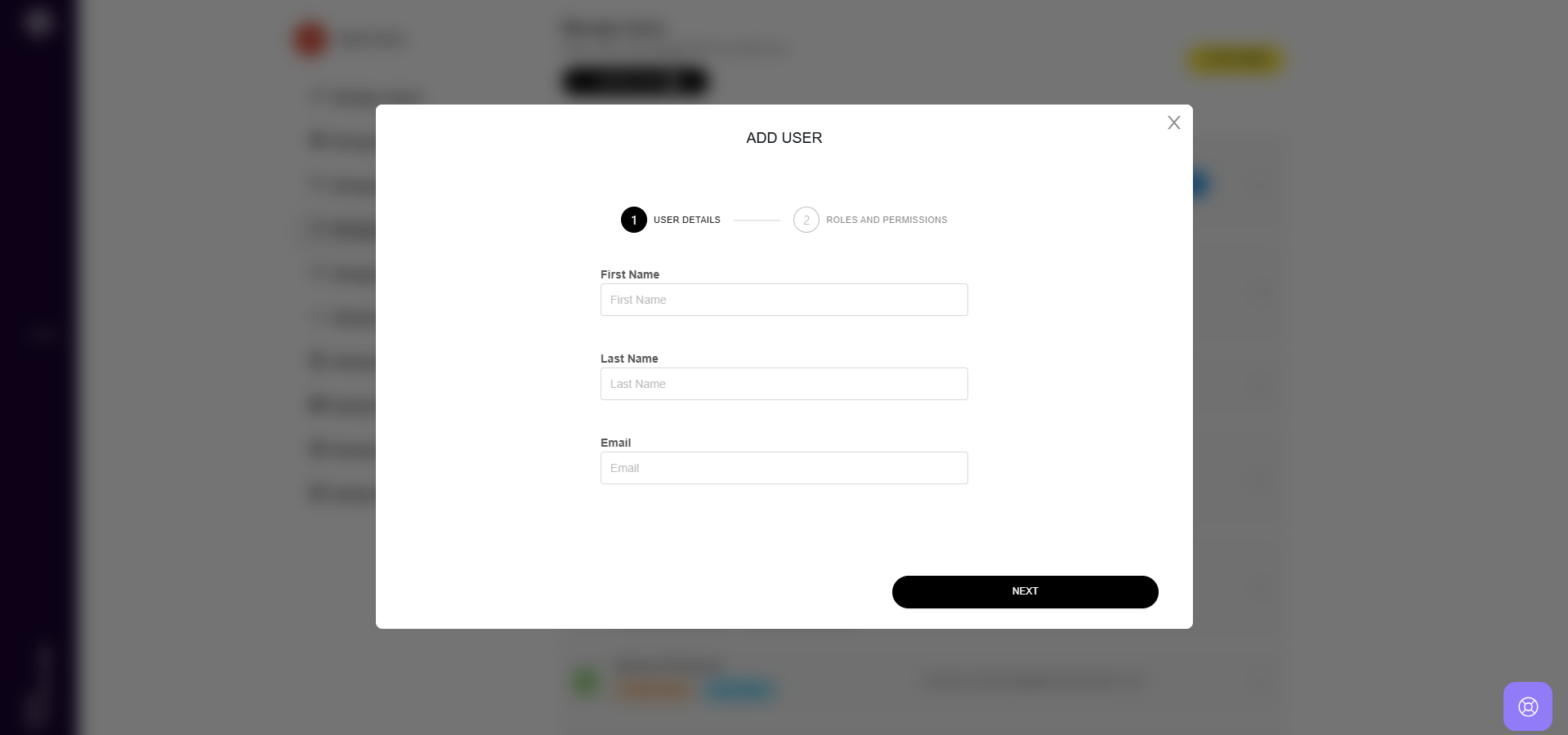 4. A modal will appear where you can enter the user's details. Fill in the necessary information.