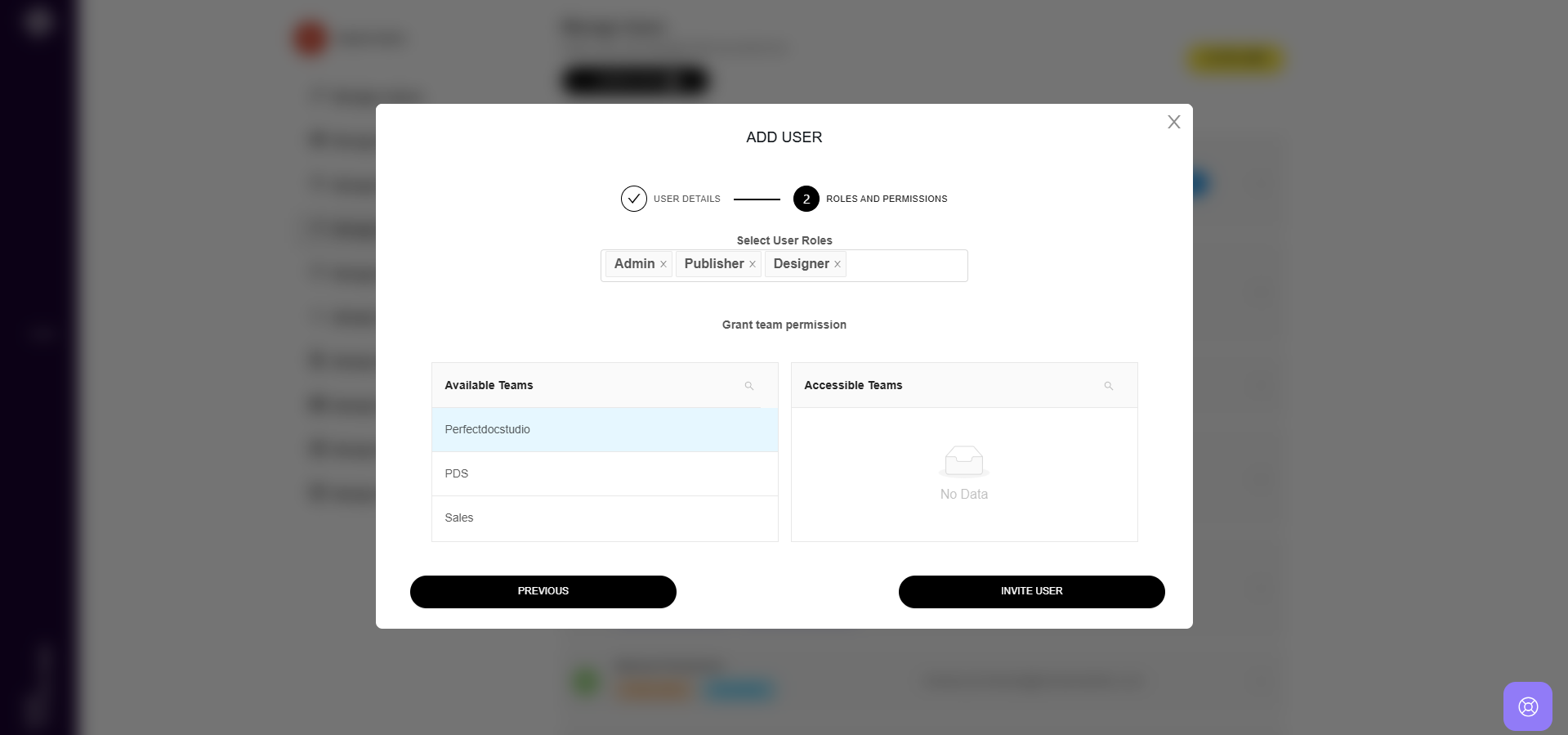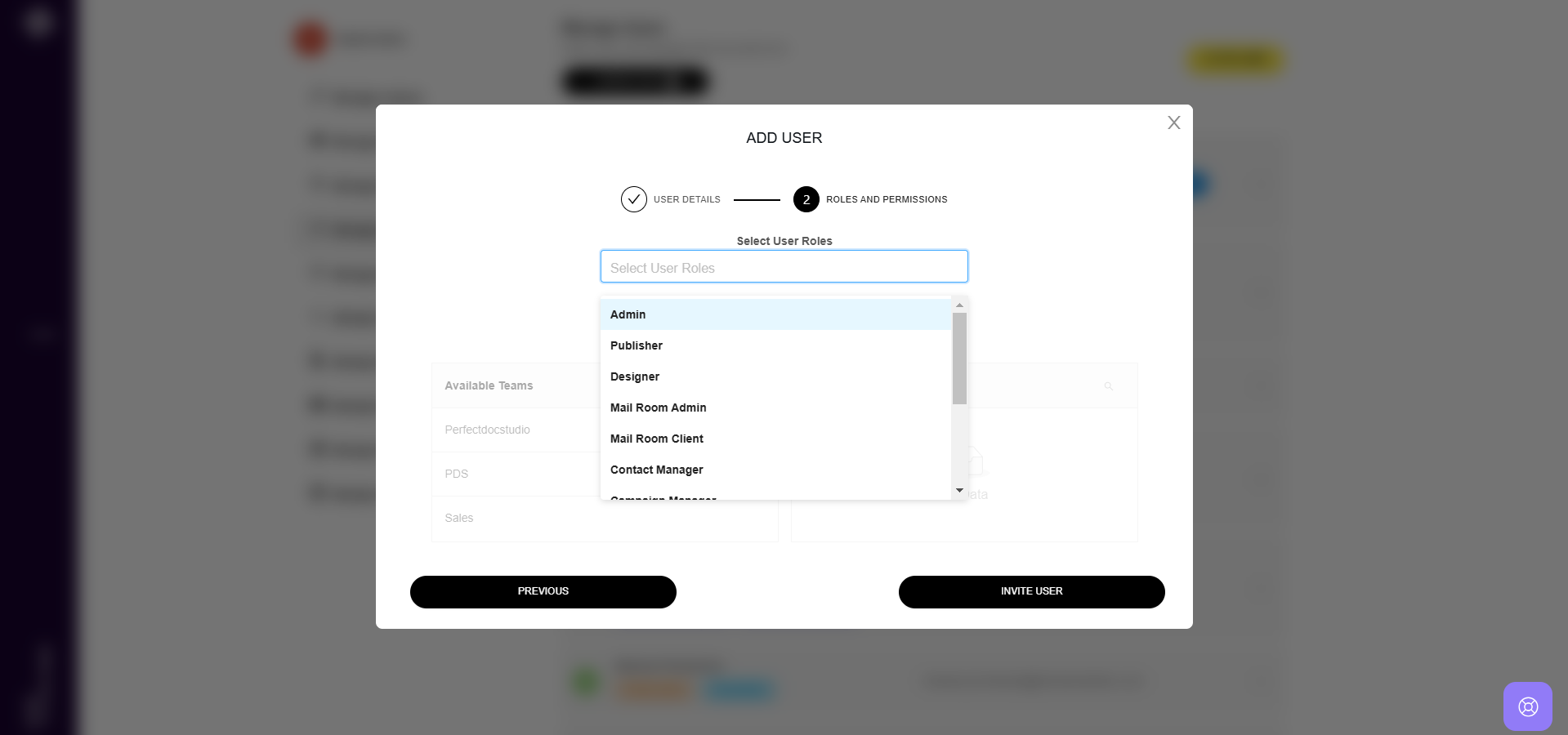 5. After entering the details, click "Next" to assign roles and permissions to the new user.