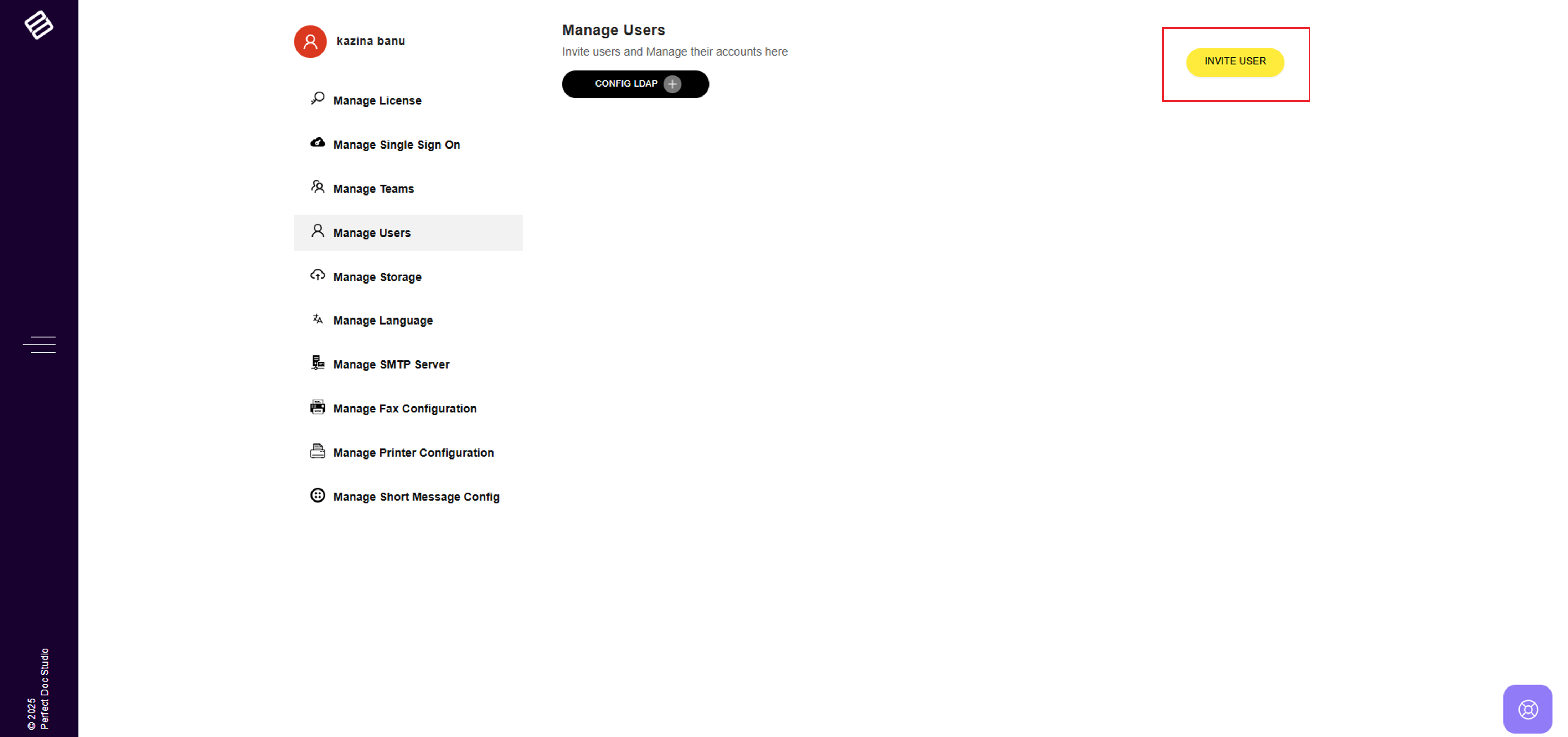 3. In the top right corner, click on the "Invite User" option.
