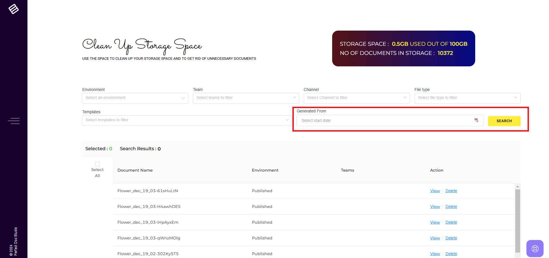 1. Navigate to the Clean-Up Storage option located in the left-hand side menu on the home screen.