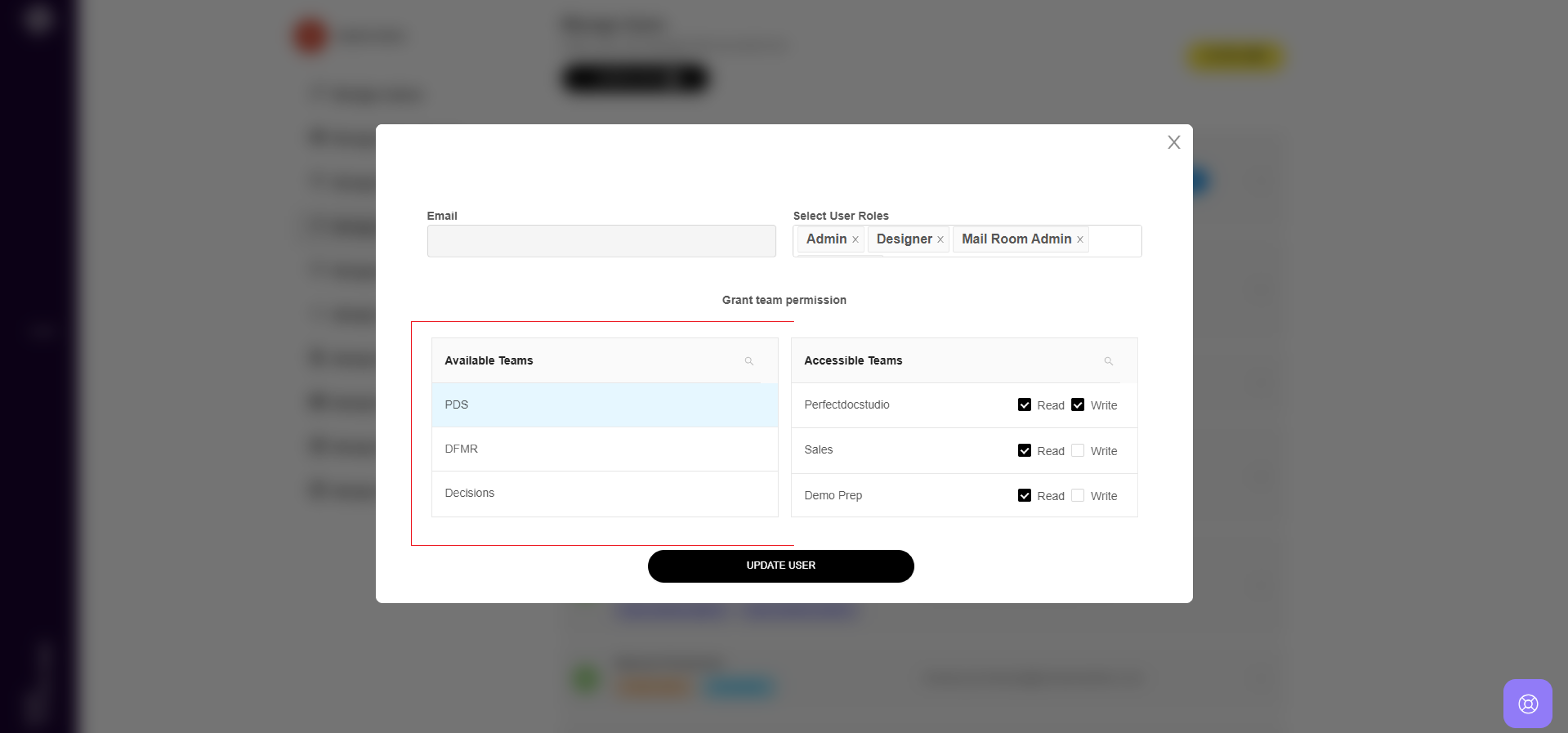 Team management in Perfect Doc Studio is simple and efficient. You can create multiple teams and assign users to them, allowing for precise access control. Team Creation: 1. Click on the "Admin Configurations" section in the left-hand menu. Note: ...