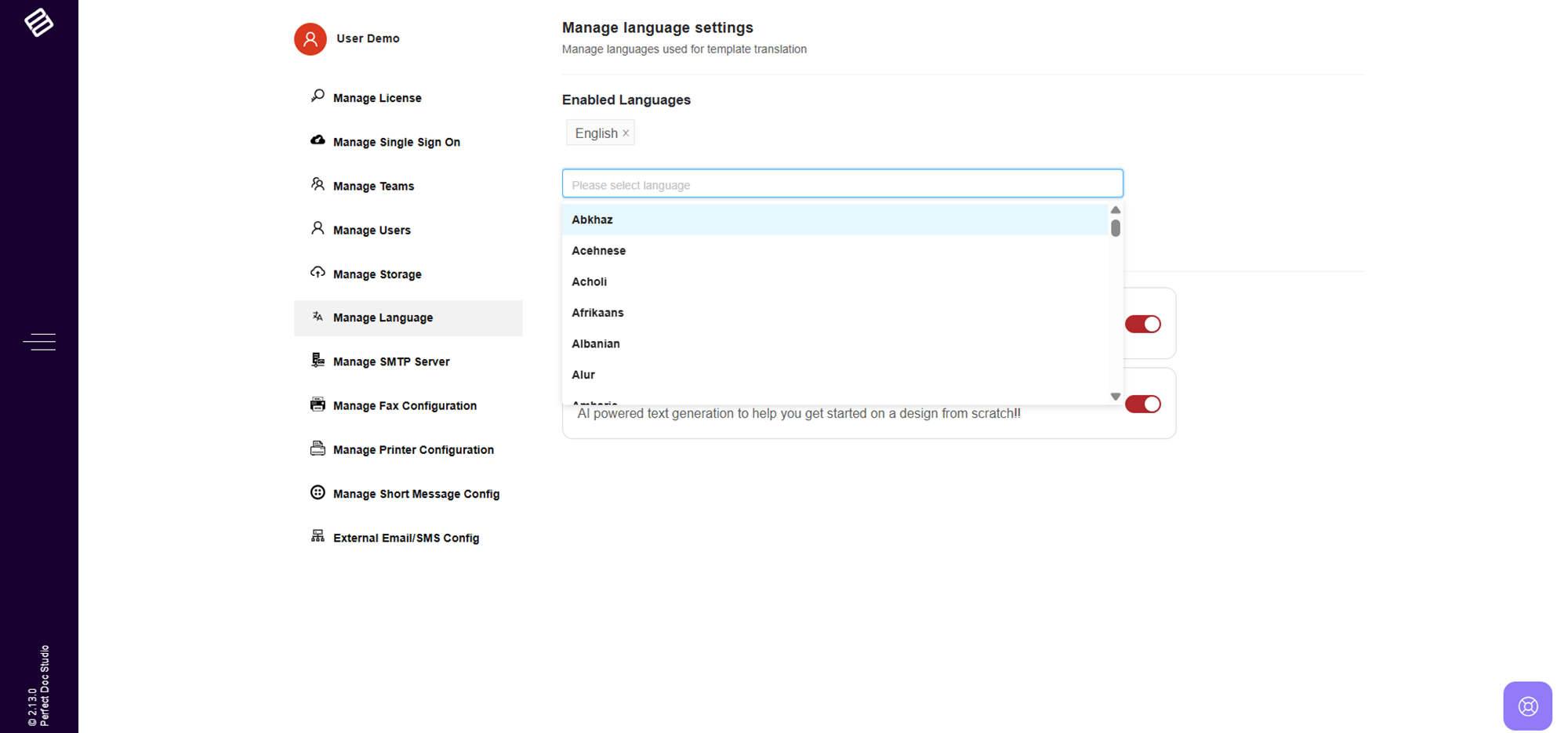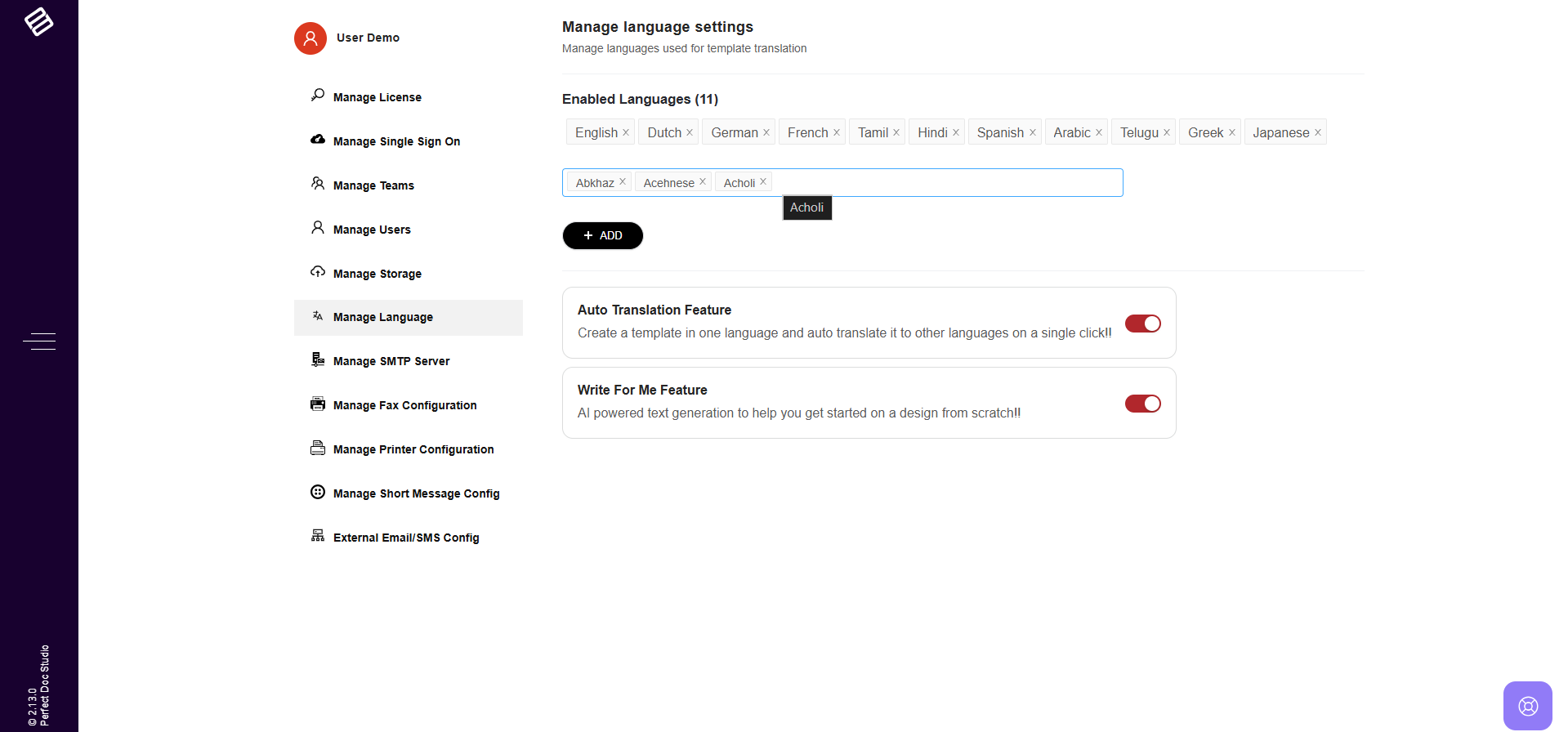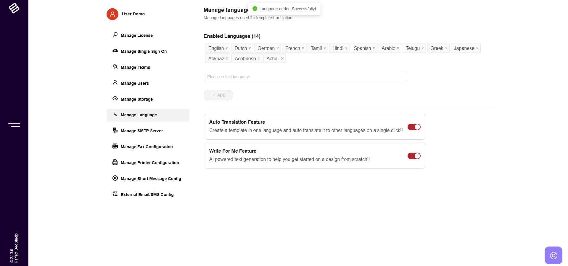 Perfect Doc Studio supports multi-language document generation. To enable this feature, follow these steps: