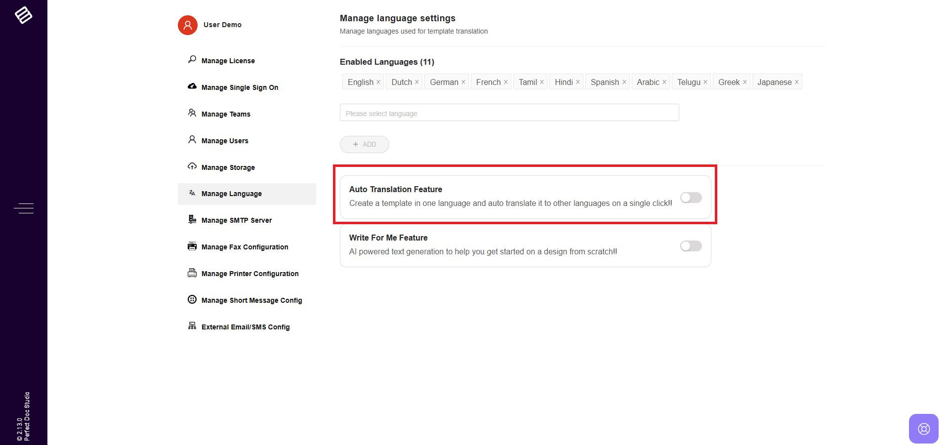 3. Turn this toggle ON to enable automatic translation in Perfect Doc Studio.