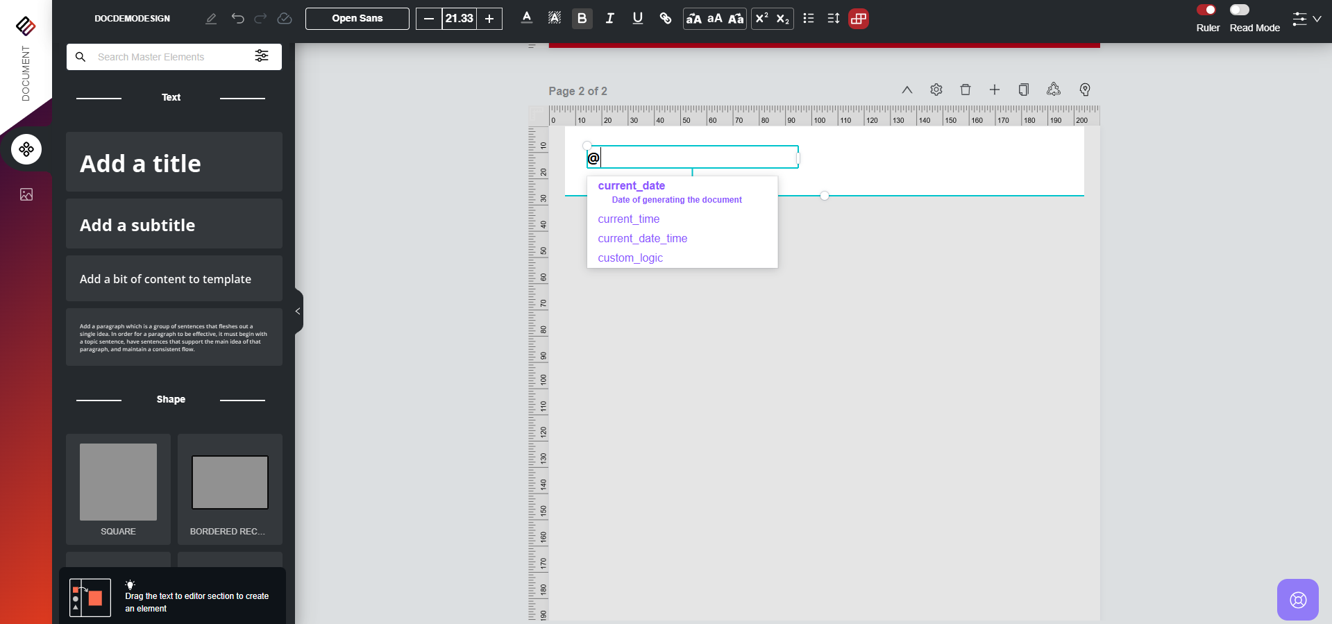 Function calling in Perfect Doc Studio allows you to dynamically insert values or apply logic within your document templates. Steps to Call a Function 1. Navigate to the location in your document where you want to apply a function and type "@". 2. A ...