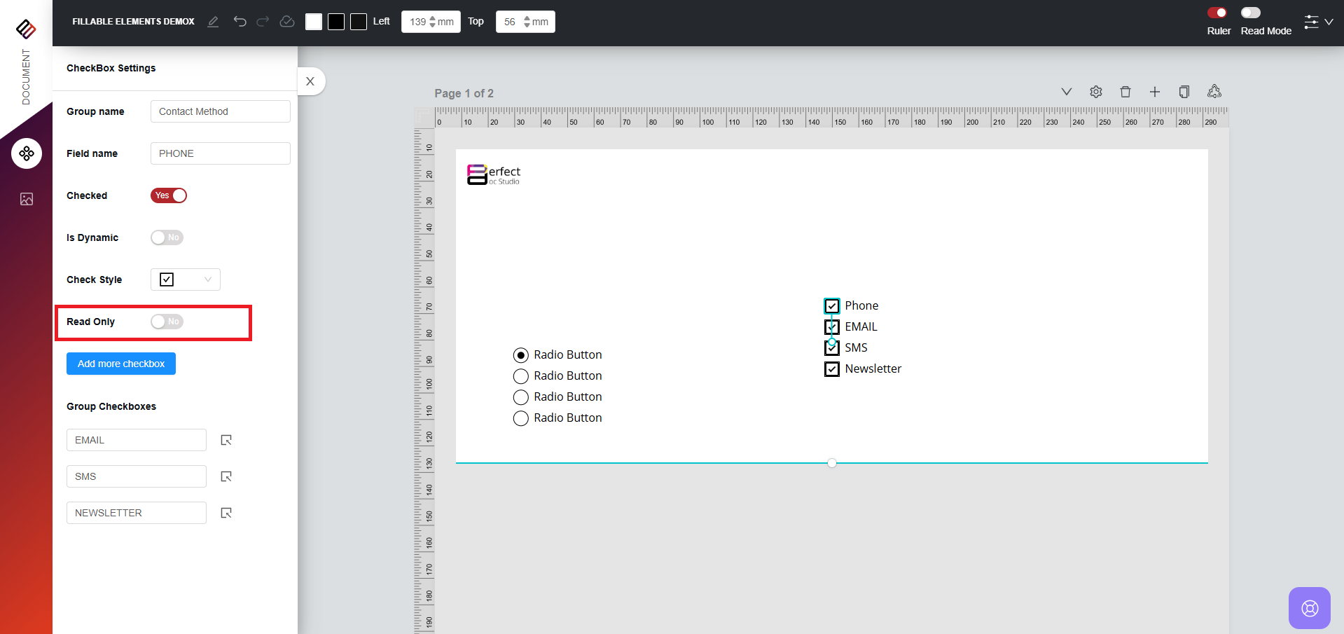 Read Only: Enabling this option makes the check box static, preventing any interaction in the preview. The button will retain its pre-set value.