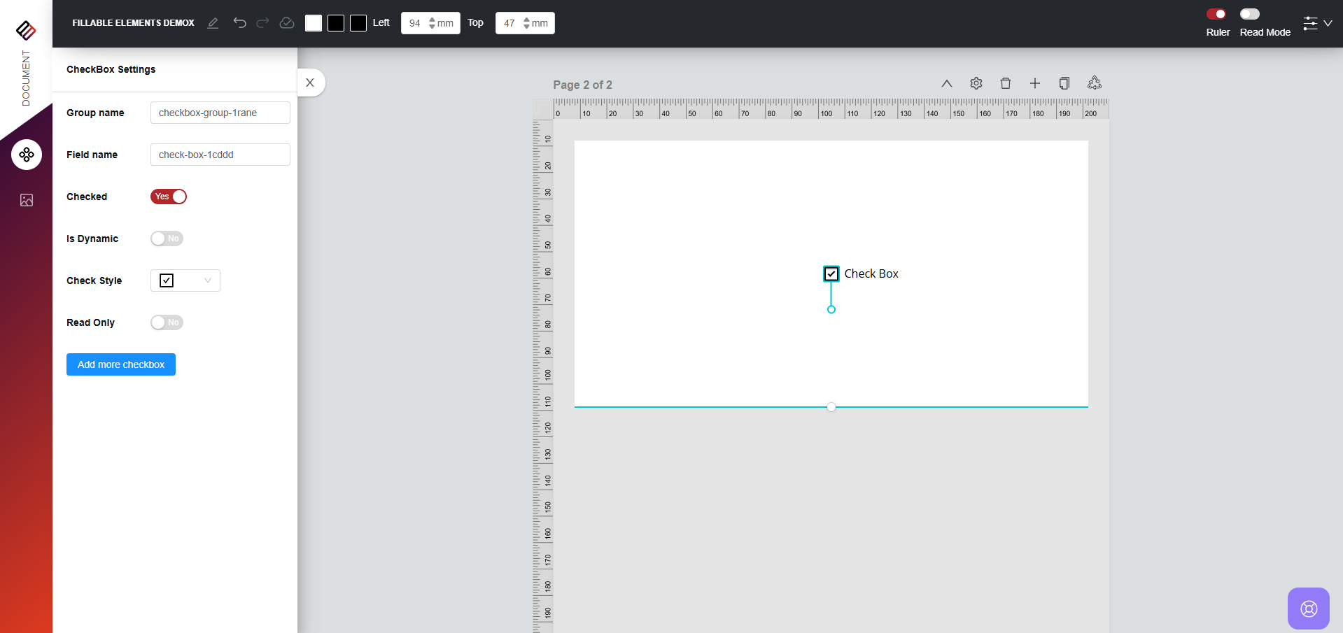 Checked Toggle: Enables the user to decide whether the check box should appear as checked or unchecked by default in the document preview.