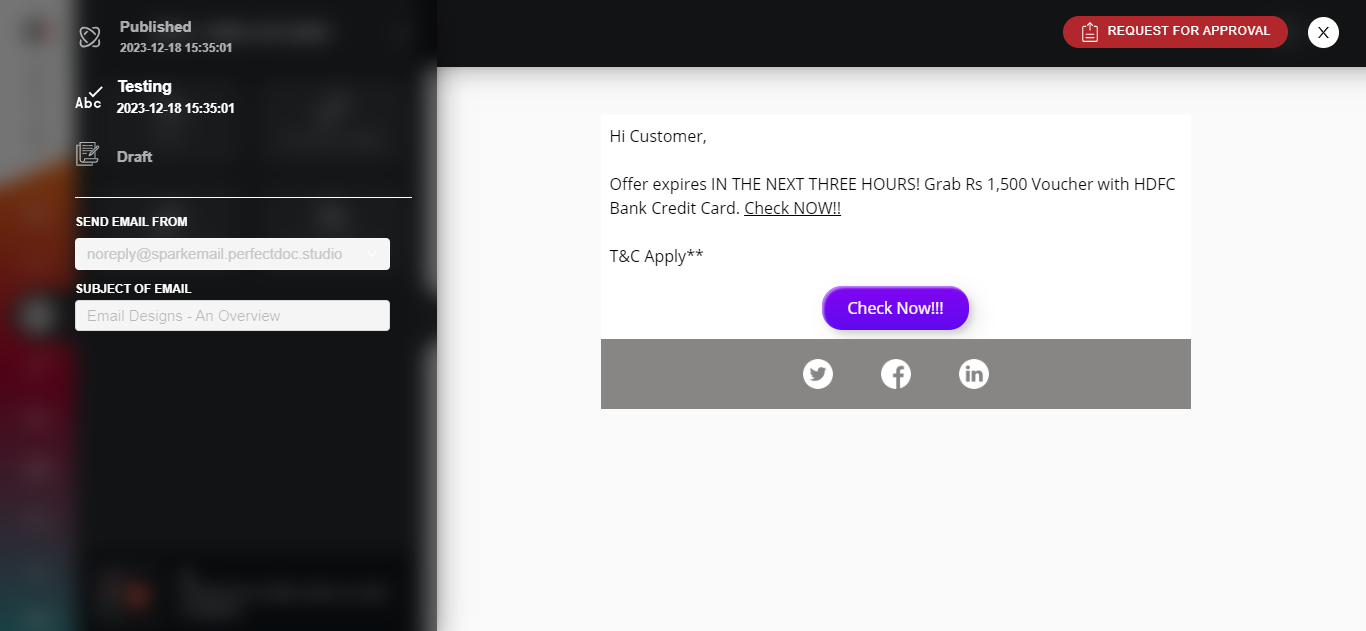4. By clicking on the Publish button, the Publisher makes the Email Design available for production use.