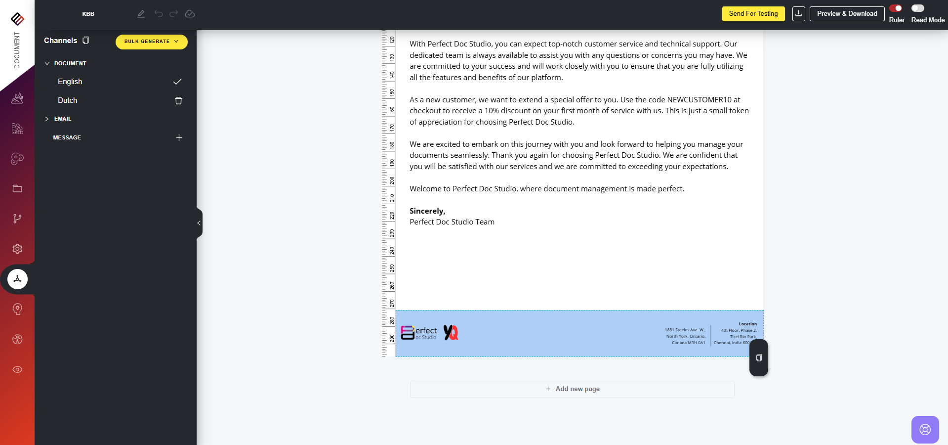 Users can create reusable pages and sections within a document template. This means they can design an entire document for reuse in another template or build specific components—like headers—and save them as reusable sections for future use.