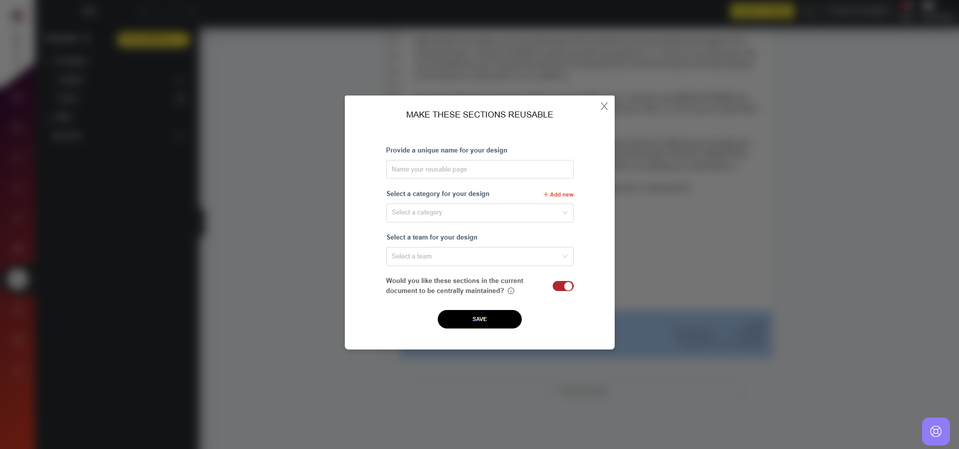 5. You will see a toggle option: “Would you like these sections in the current document to be centrally maintained?”