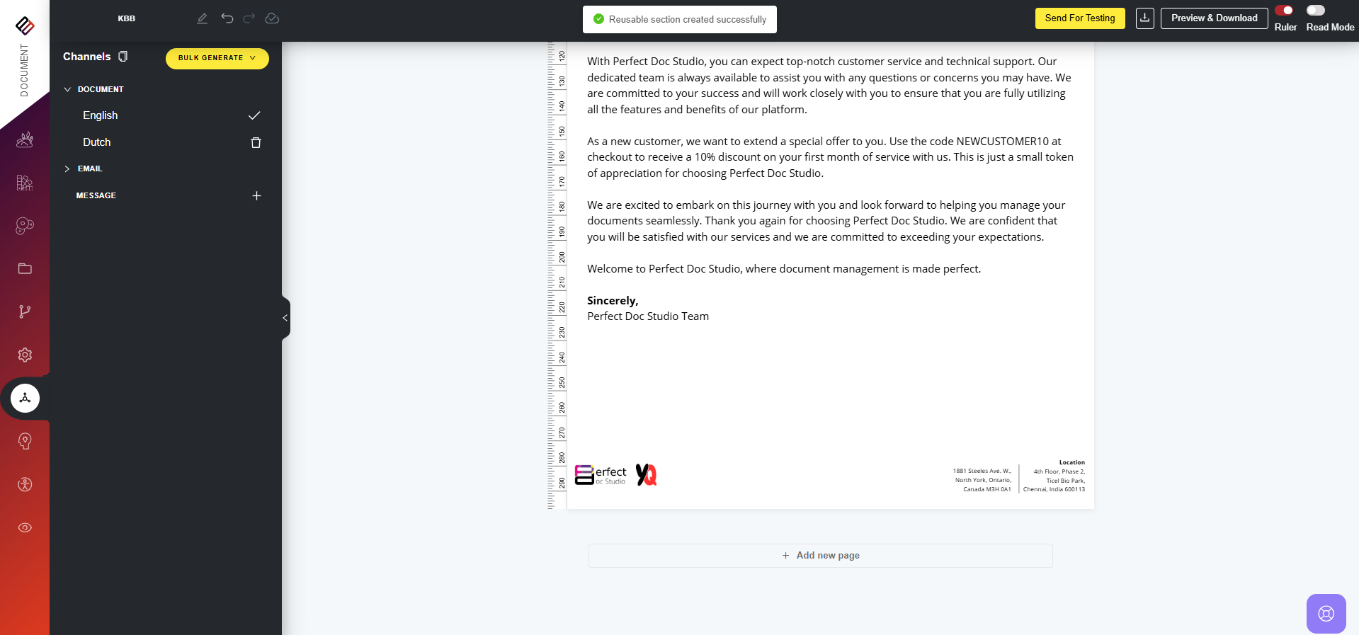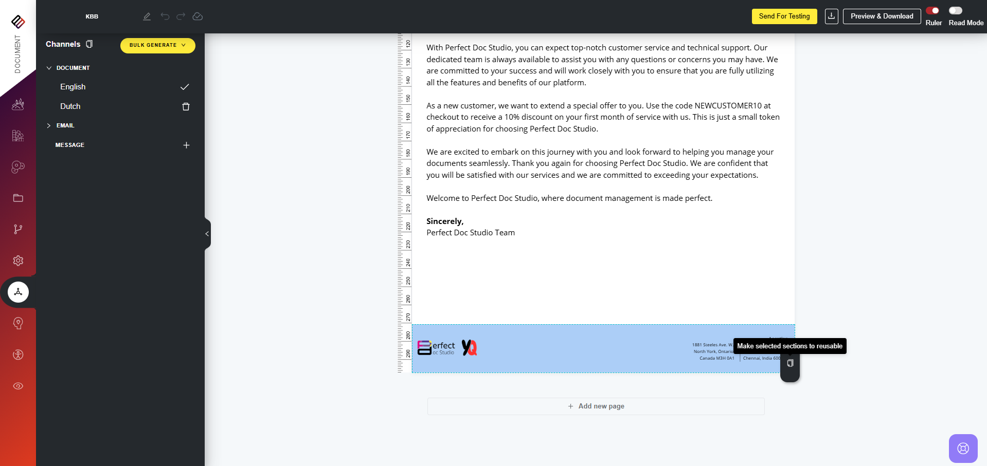 You can convert any existing block into a reusable section. For example, if you design a header or footer in a document and want to reuse it later, you can save it as a reusable section for future use.