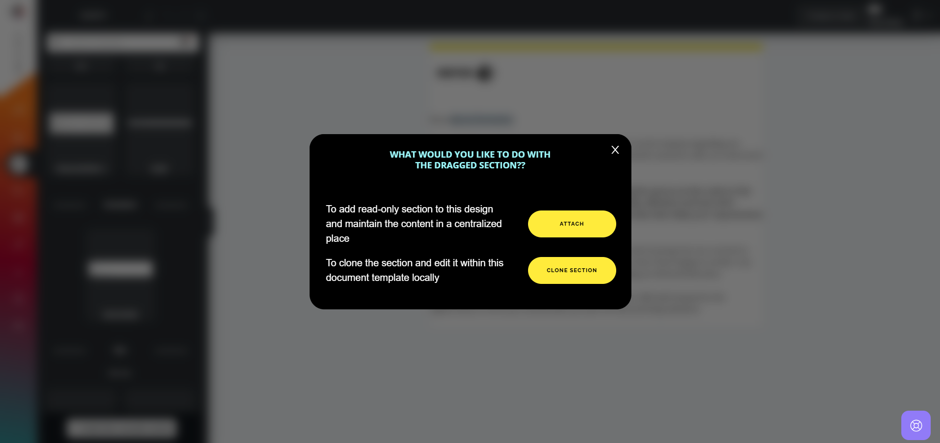 Attach Section: Choosing the Attach option incorporates the section as a read-only component in your template. This ensures content consistency by linking it to a centralized template. To modify the content, changes must be made to the original template. Updates will automatically apply to all emails using the attached section, allowing for centralized management and seamless updates.