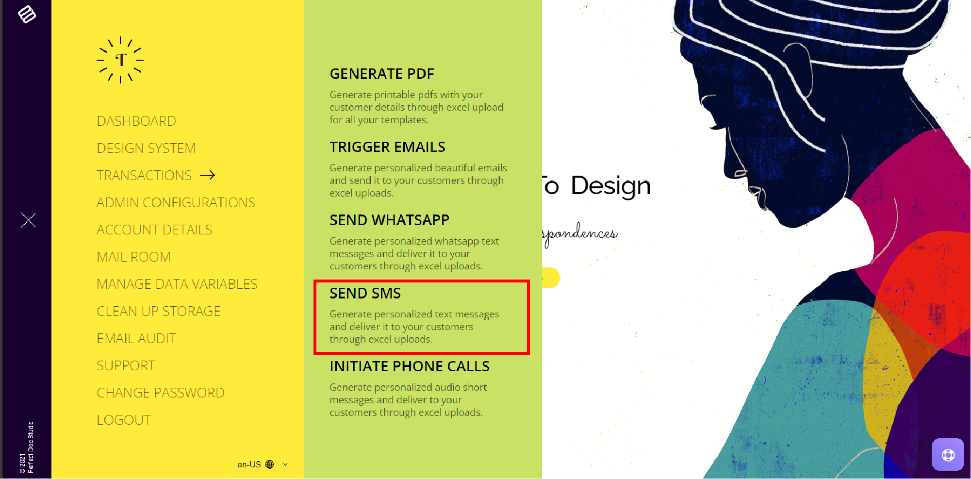 2. Choose Transactions and select Send SMS.
