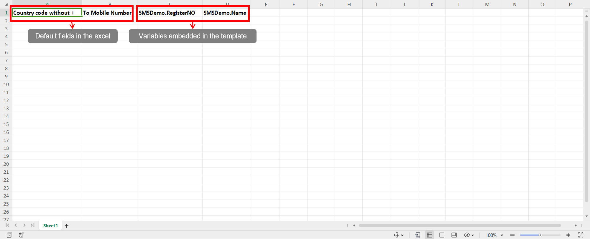 5. In the "Sample Format" Excel sheet, there are predefined fields: