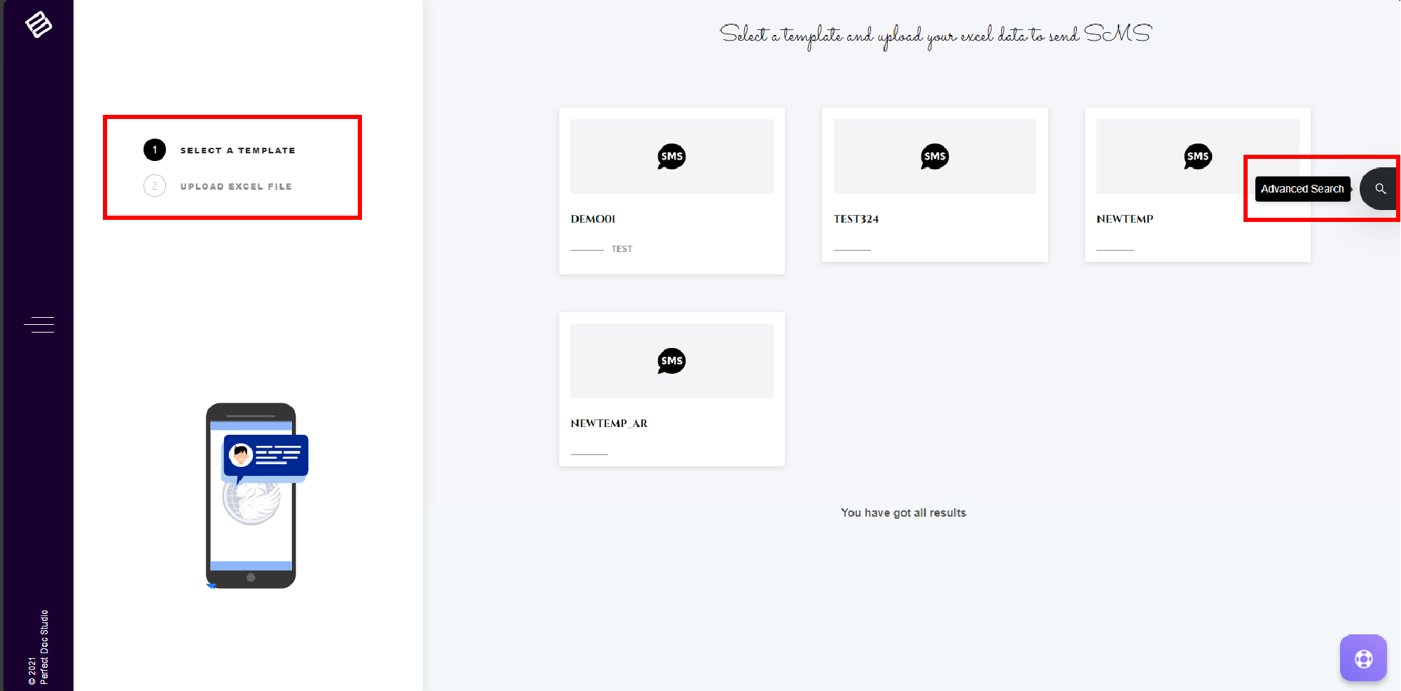 Info: Only published SMS templates are visible in the selection area. Therefore, please ensure that your SMS template is published before making a selection.