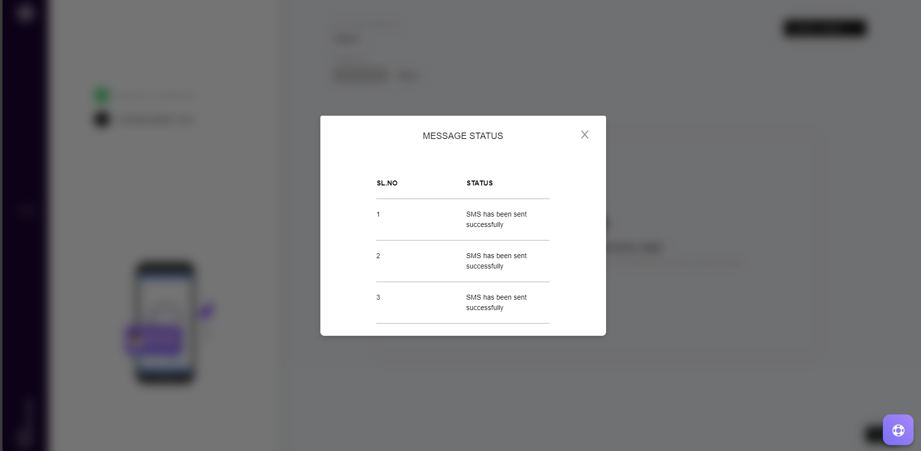 7. The system will trigger the SMS sending process, and we will be able to view the status once the SMS is successfully sent.
