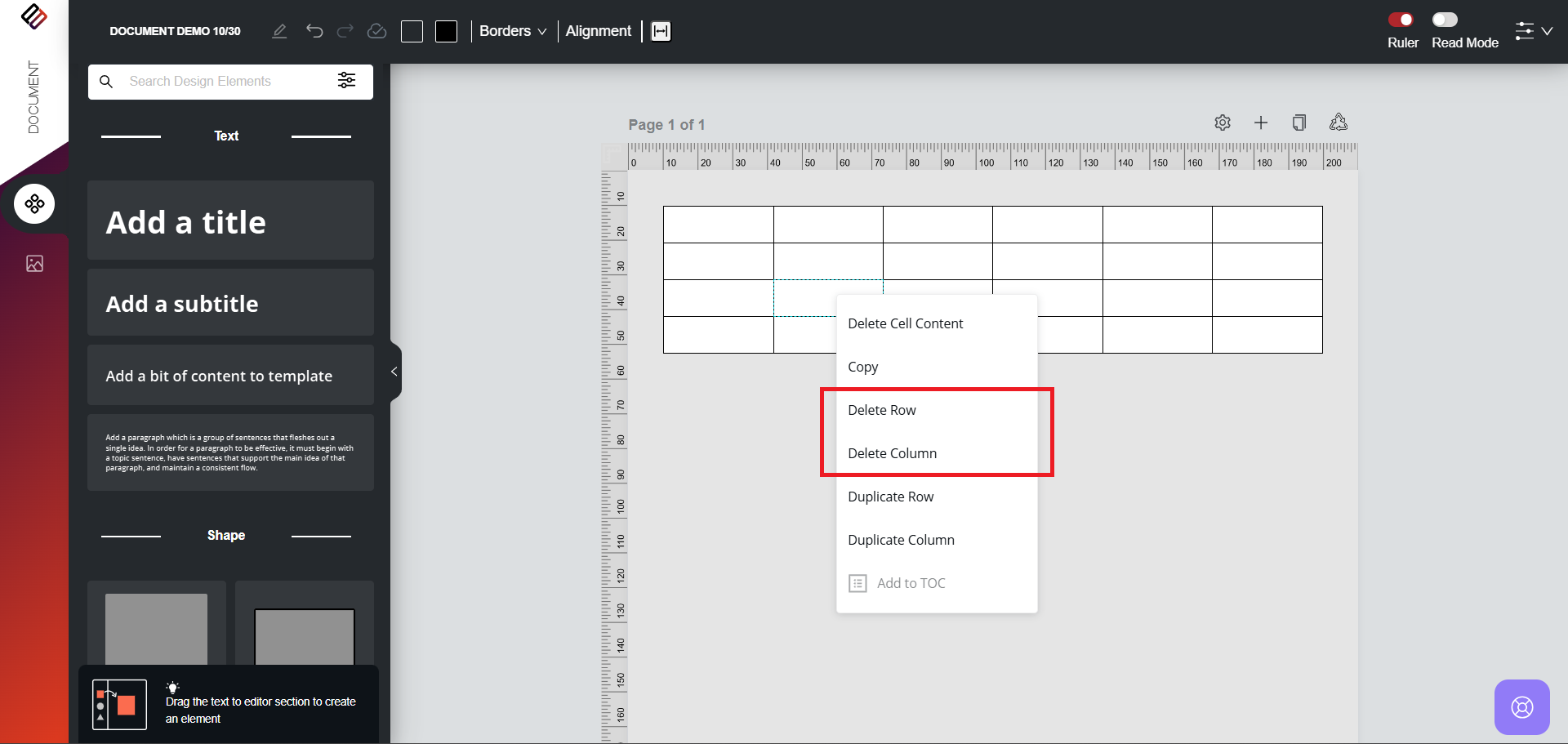 To delete a cell, right-click on the selected cell and choose Delete. To delete only the cell’s content, select Delete Cell Content from the options menu.