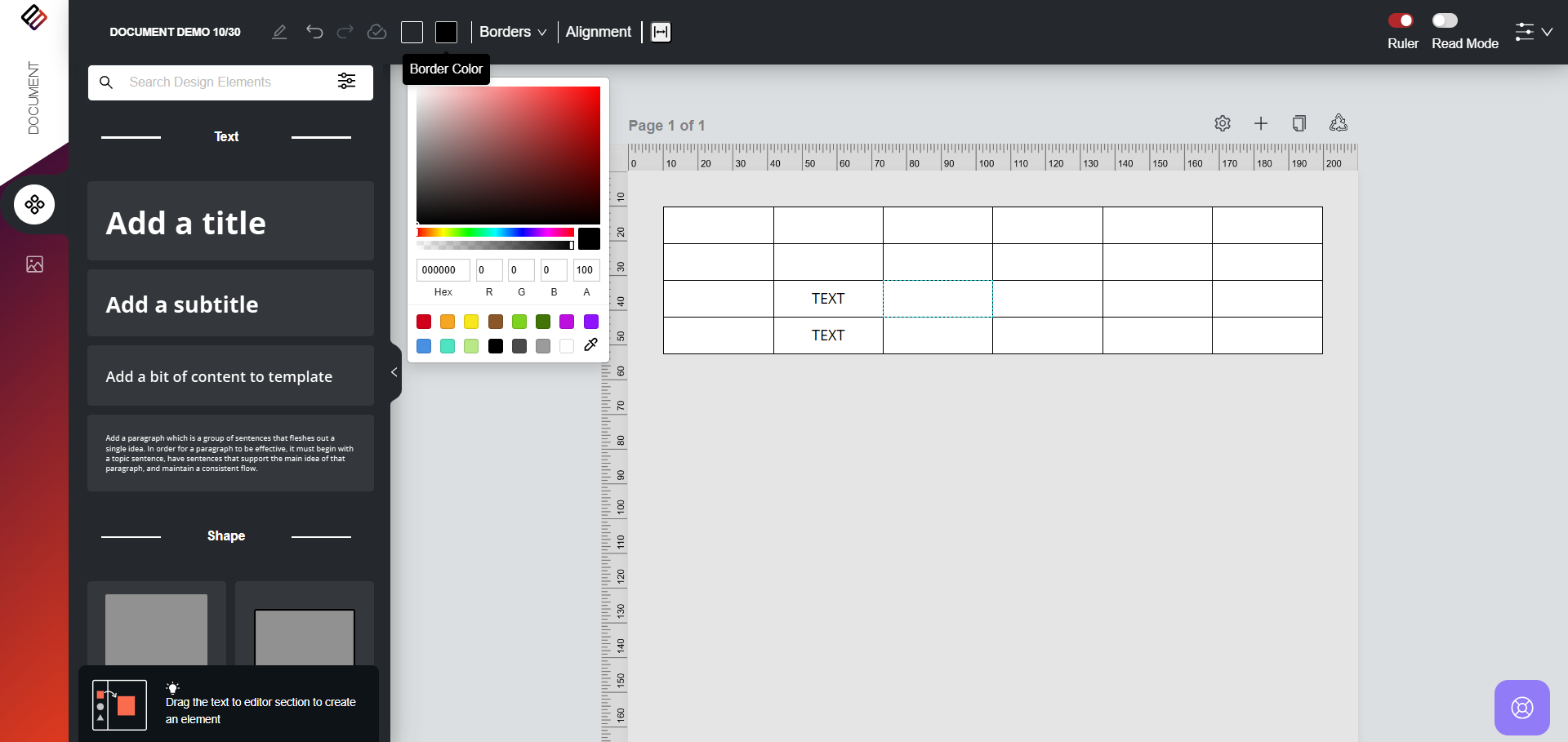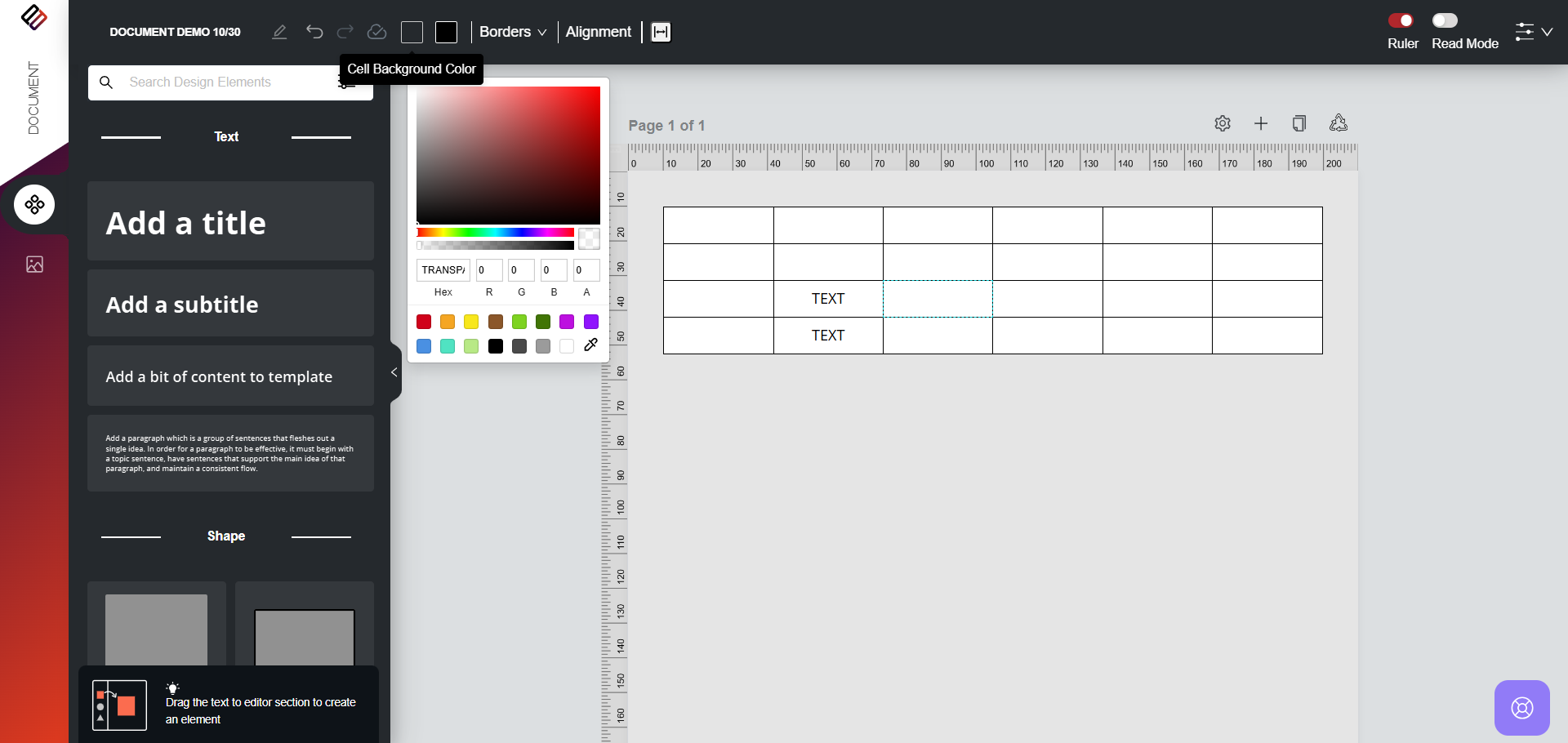 To change cell background or border colors, select the cell, then choose a color from the Color option in the top menu.