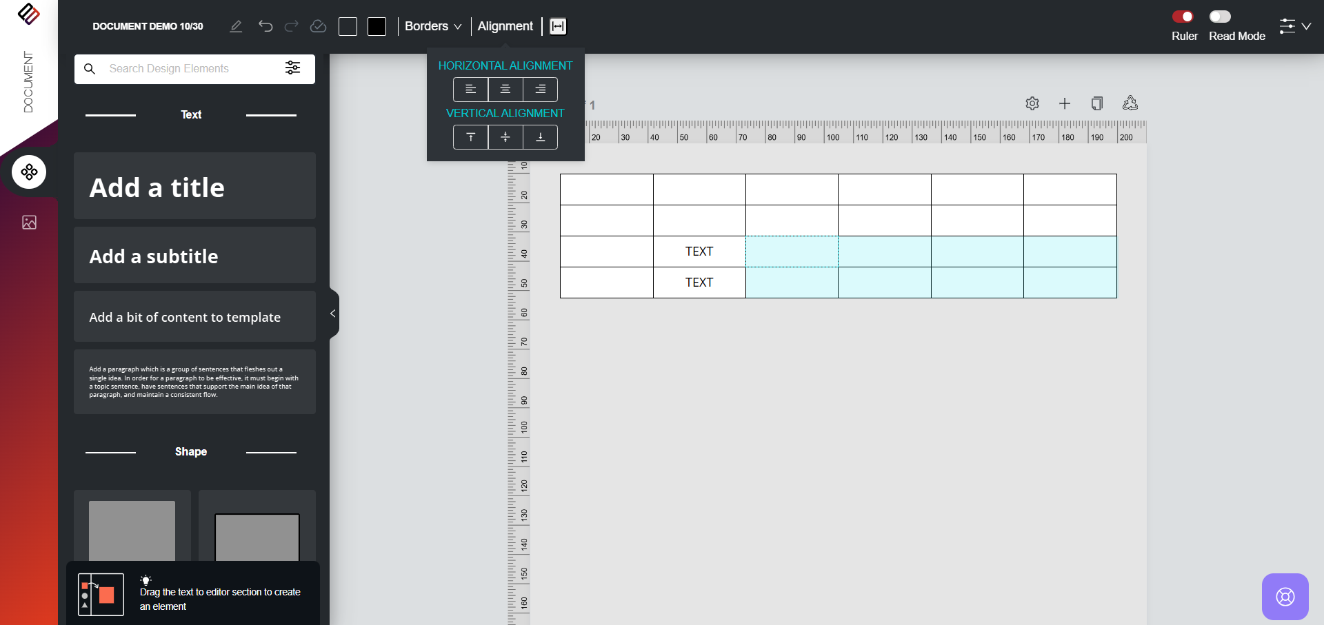 Align content within cells using the Alignment option in the top menu. Both Horizontal and Vertical alignment options are available.