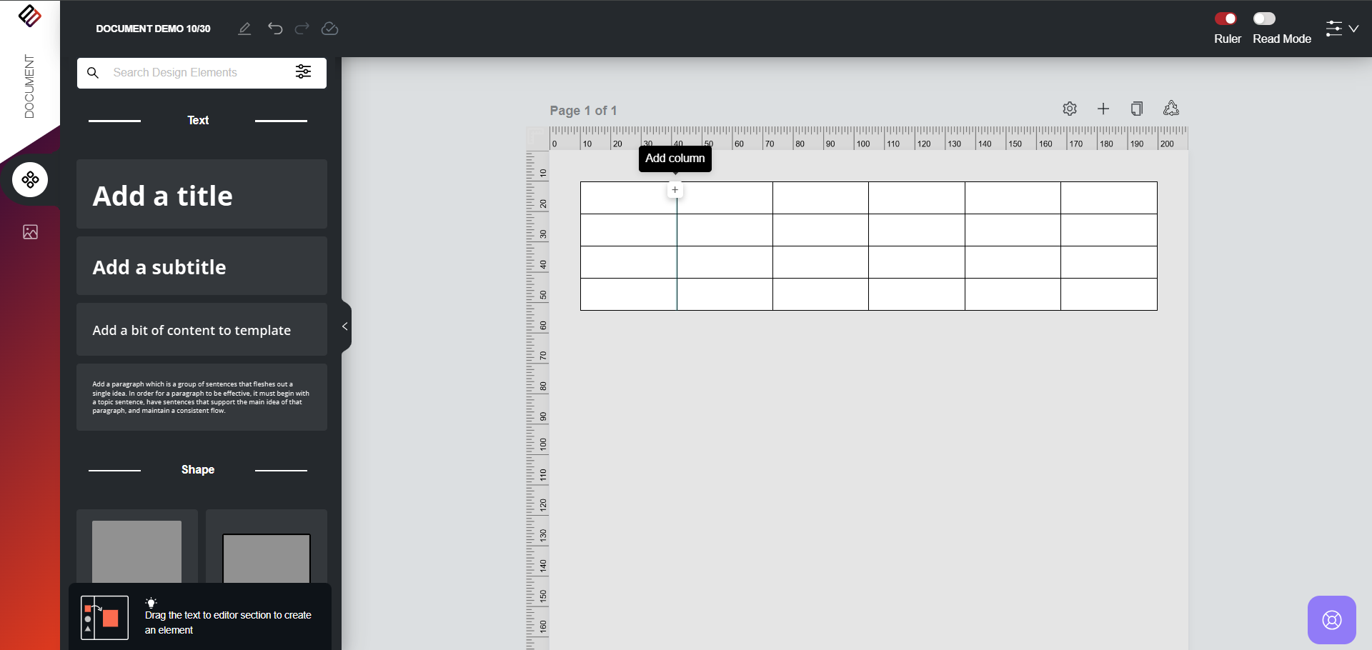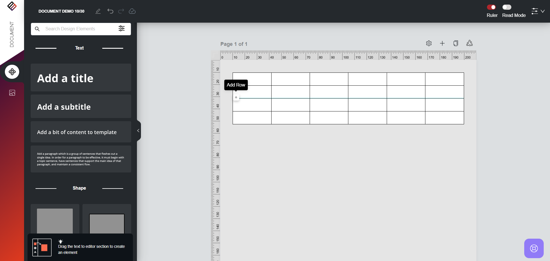 Hover over the edges of any cell to display a plus (+) symbol. Click this symbol to add a row or column as needed.