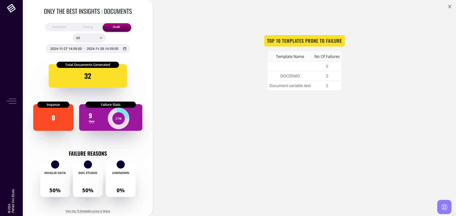 There is an extra feature allowing users to access the Top 10 templates with a higher likelihood of failure. Simply click on the "View Top 10 templates prone to failure" option located below the Failure Reasons section.