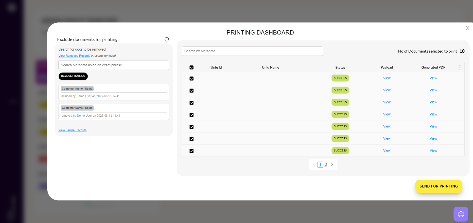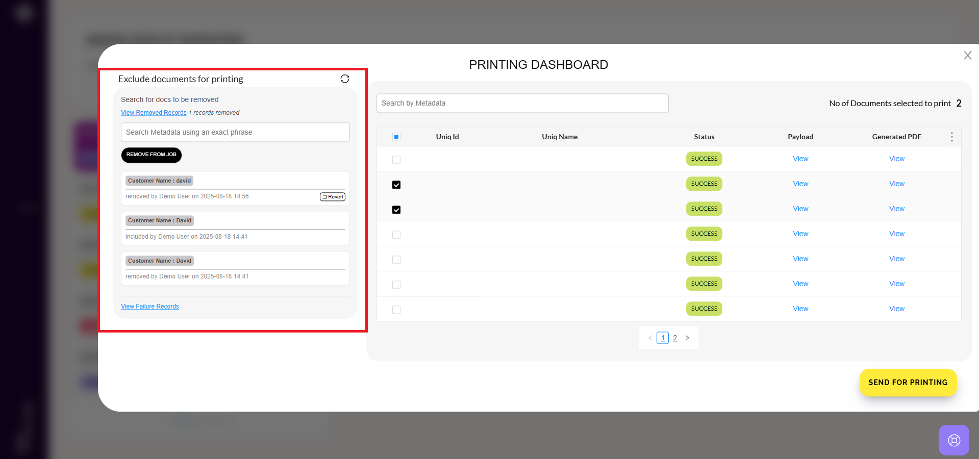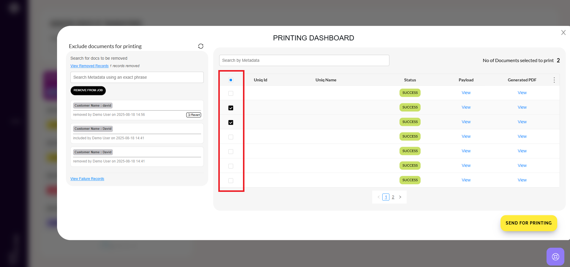 Once all unnecessary documents have been excluded, click the Send for Printing button to proceed with the remaining jobs.