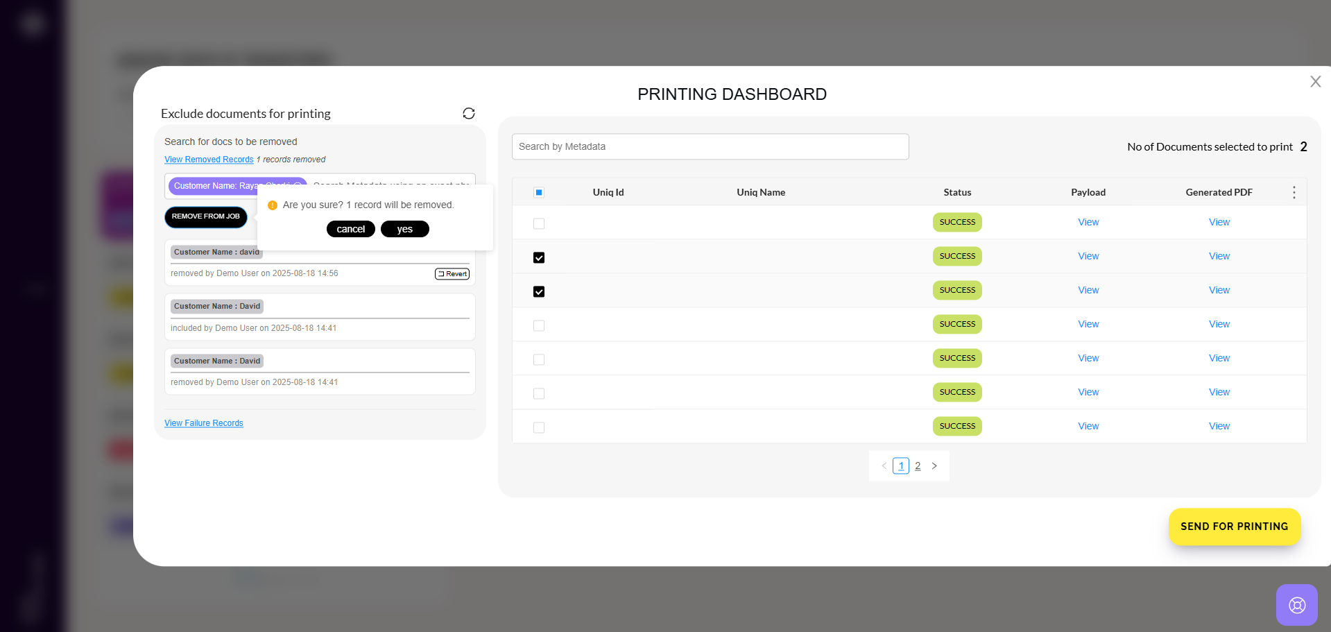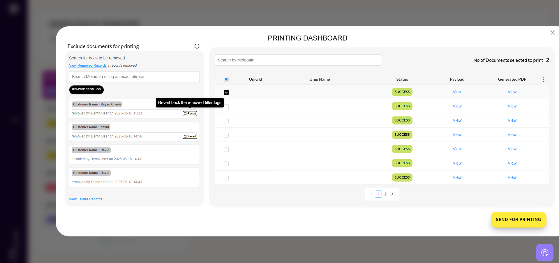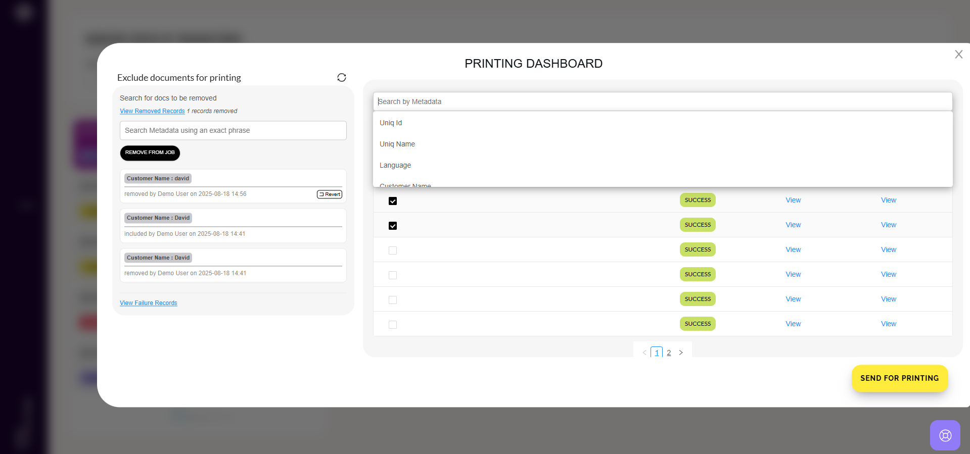 Once all unnecessary documents have been excluded, click the Send for Printing button to proceed with the remaining jobs.