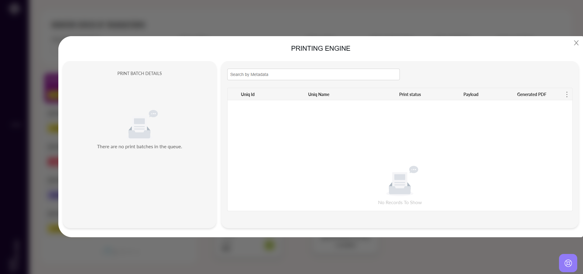 Clicking on the Printing Engine opens a modal that displays the list of jobs currently queued for printing.