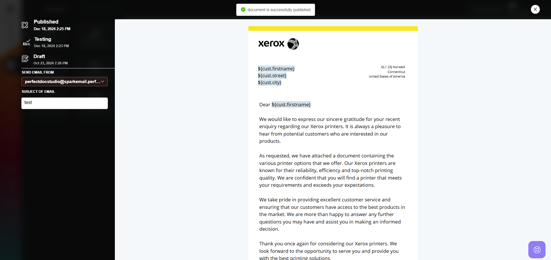 Users can seamlessly switch between all three environments to check the status of the email template they are working on. By simply clicking on the desired environment or hovering over the top-left corner of the environment area, they can select and display the corresponding environment.